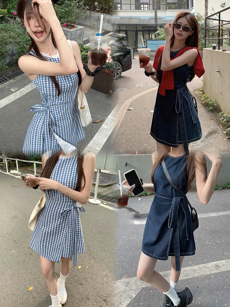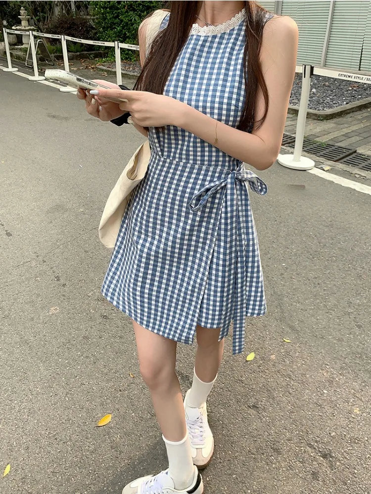 2024 New Elegant Sleeveless Y2k Mini Dress Women 2000s Casual Outwear Short Party Dress Vintage One Piece Dress Korean Fashion