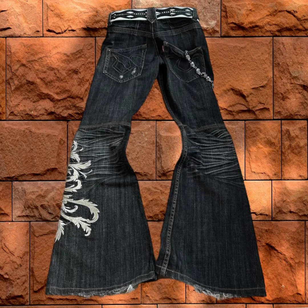 2024 New Retro Distressed Micro-flared Embroidered Jeans Street Men and Women High Waist Harajuku Y2K Industrial Fit Jeans