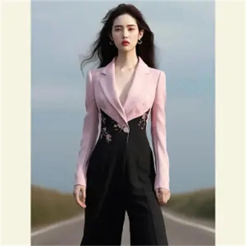 2024 Spring and Autumn New Exquisite Temperament Goddess Fan Advanced Sense Fragrance Formal Occasions Contrast Color Jumpsuit