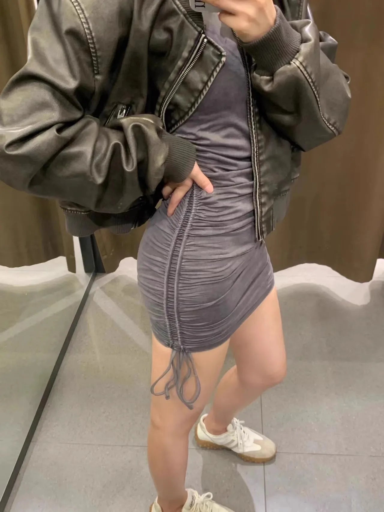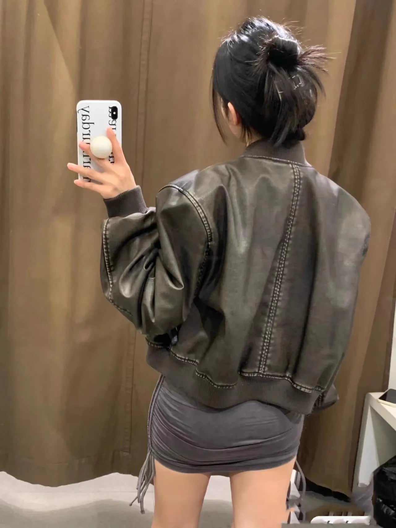 2024 Women's new vintage imitation leather bomber jacket coat top women's style