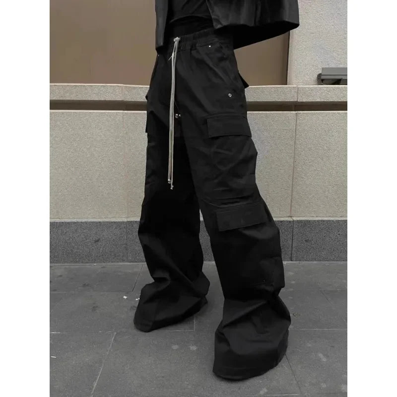 Baggy Black Cargo Pants Women Wide Leg Casual High Street Drawstring Trousers Men Goth Grunge America Style Pantalones