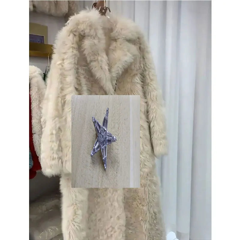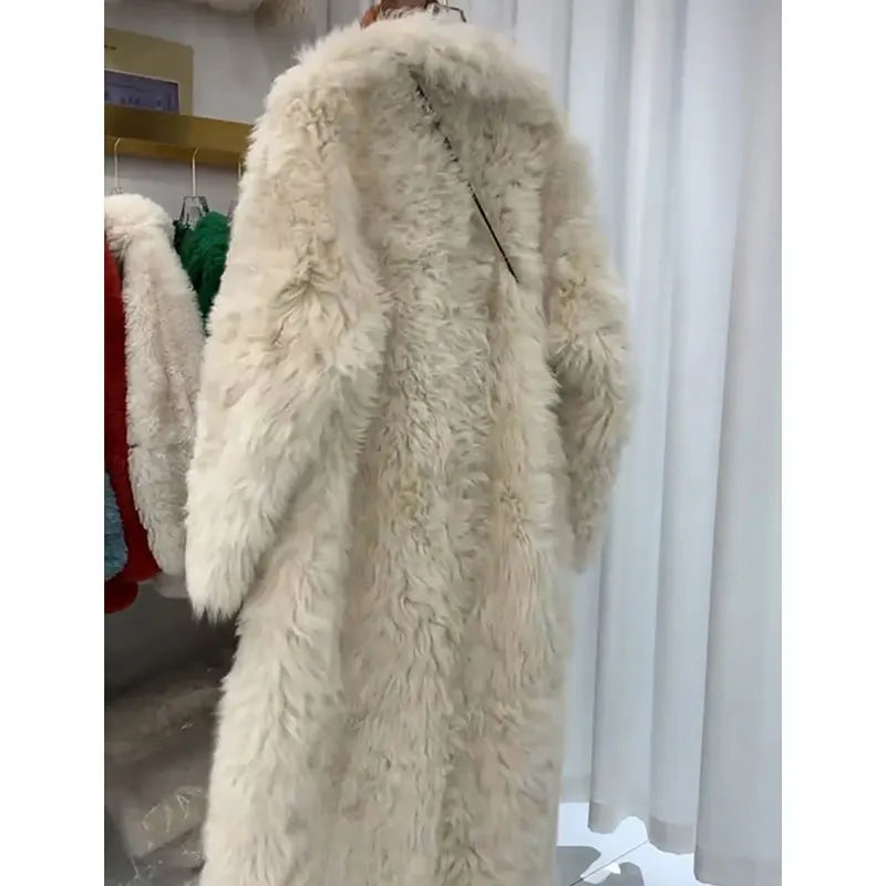 2024 Autumn/Winter New High-End Lamb Wool Coat Medium Length Fluffy Fur High Quality Women Fuzzy Clothing Turn-down Collar