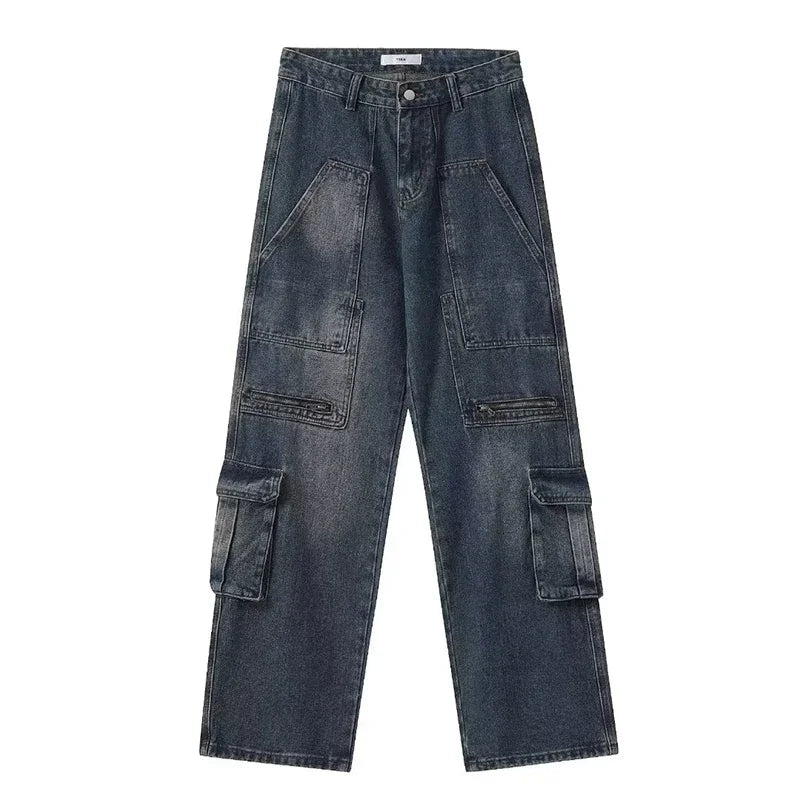 DERMEARNE 2025 New Men's Streetwear Multi-pocket Cargo Jeans Y2K Vintage Wide Leg Denim Pants Hip Hop Fashion Baggy Jean Hombre Trousers