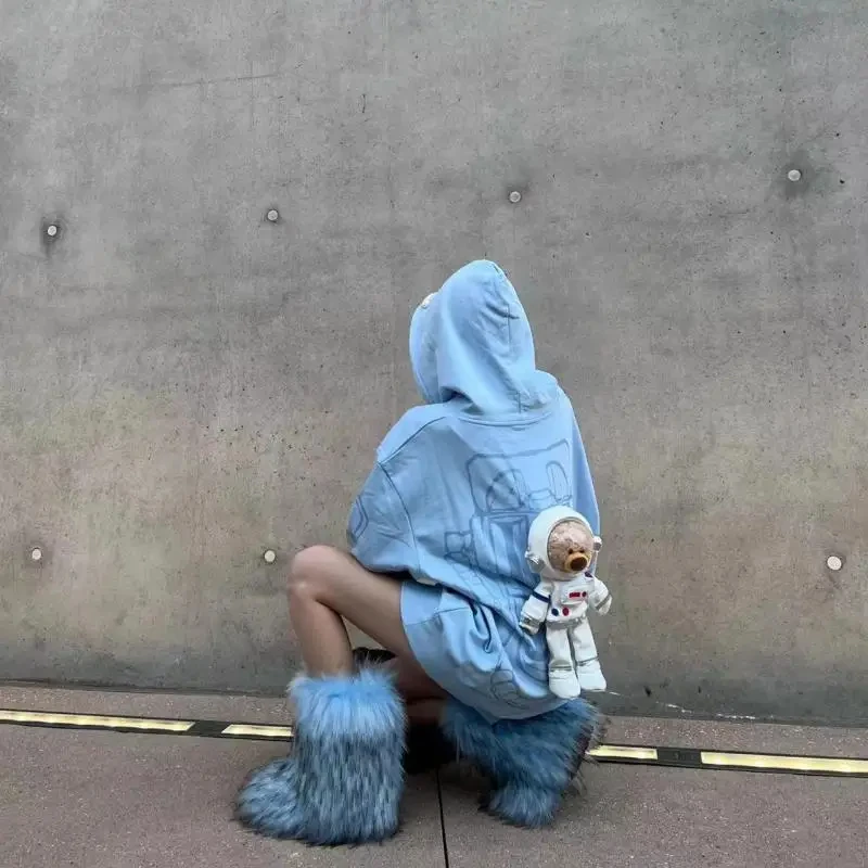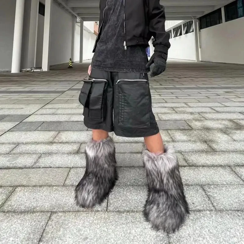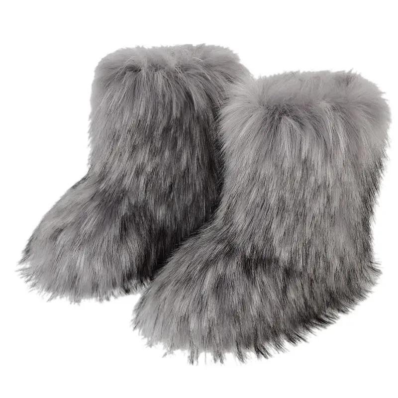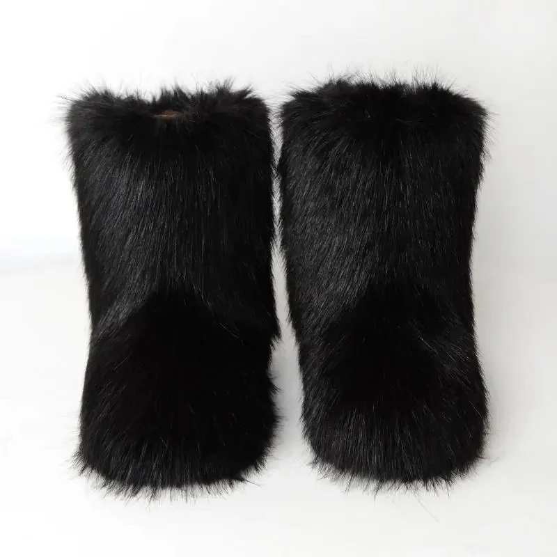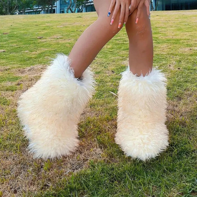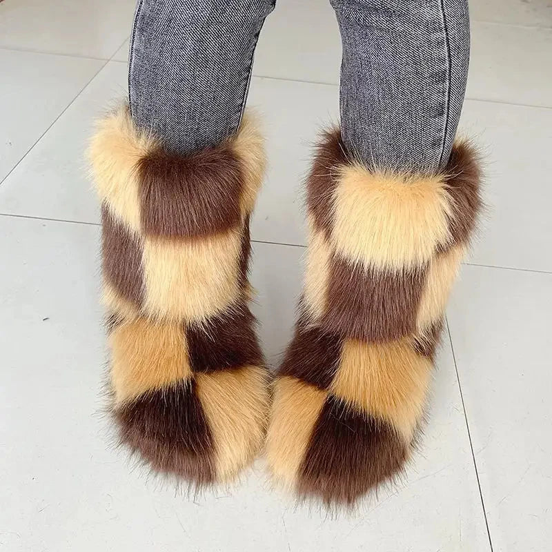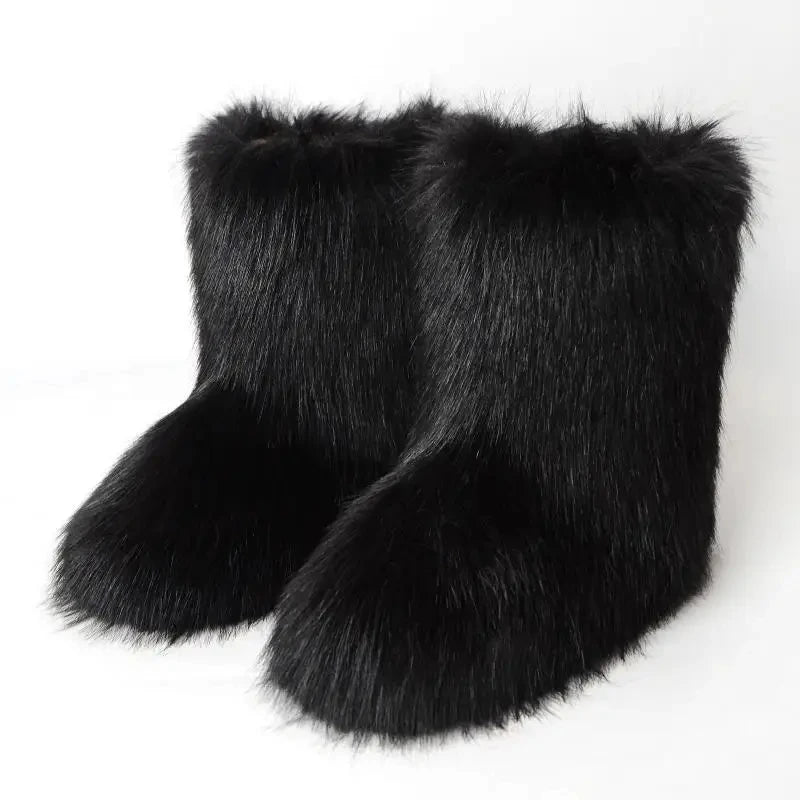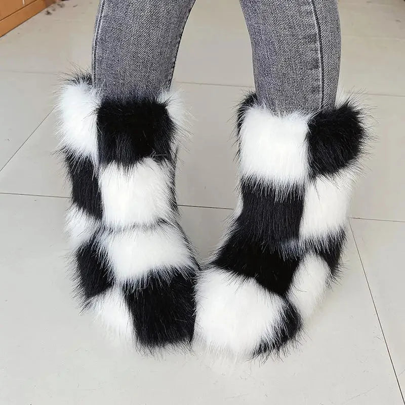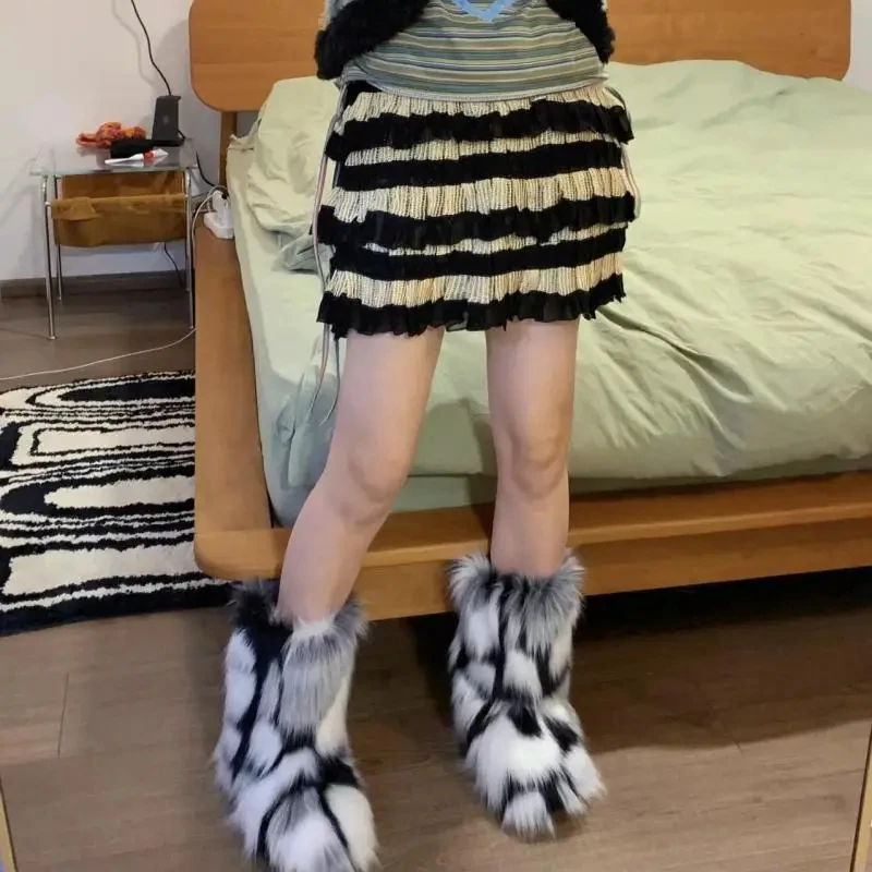 Dermearne New y2k Women's Winter Snow Boots Outdoor Luxury Furry Faux Fox Fur New Fashion Boots WomanPlush Warm Platform Shoes Bottes