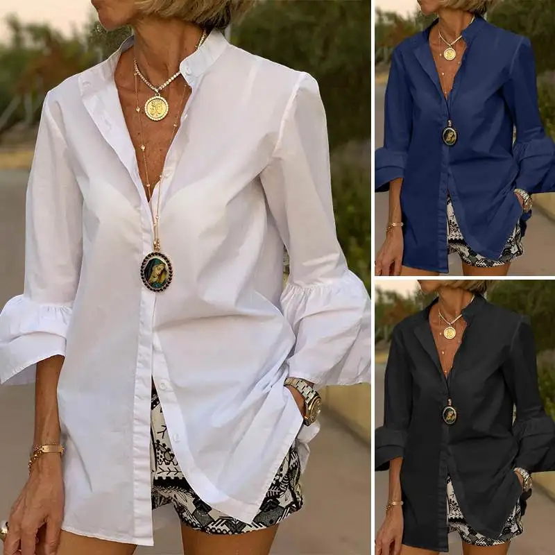 Model Number : Summer Sexy Stand Collar Long Flare Sleeve Shirts