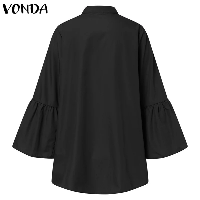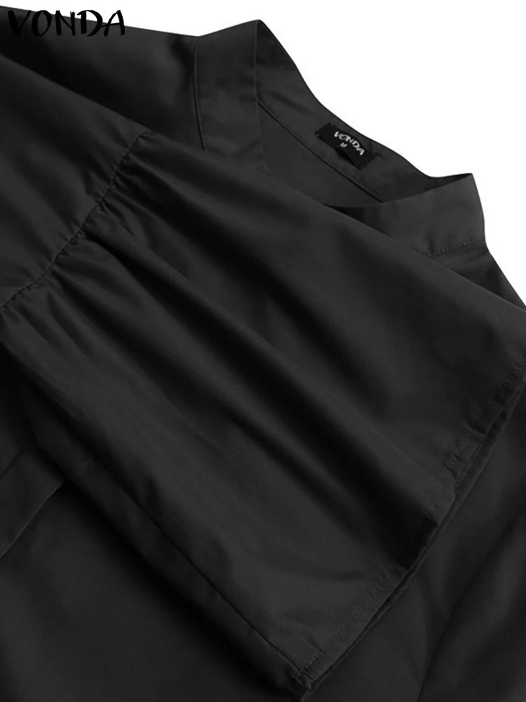 DERMEARNE 5XL Plus Size Shirts Elegant Women Blouse 2025 VONDA Fashion Solid Color V Neck Button Office Tunic Tops Casual Blusas Femininas