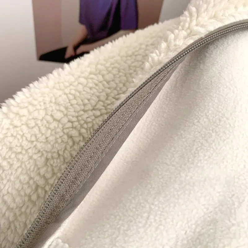 DERMEARNE Autumn and Winter Japanese Men's and Women's Fleece Stand Neck Jacket Couple Zipper Loose Warm Lamb Wool Coat Solid Color Jacket