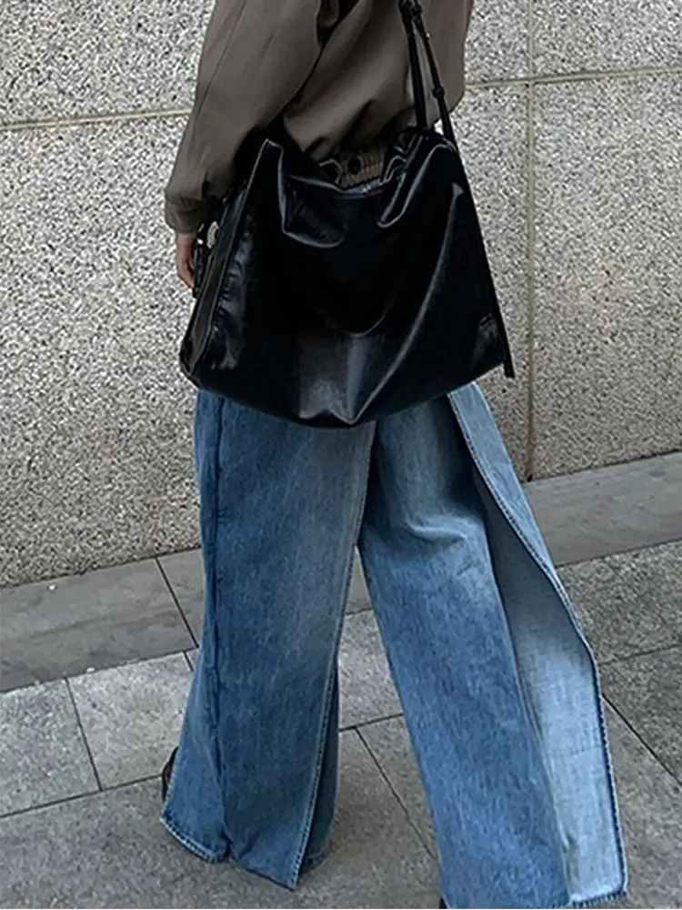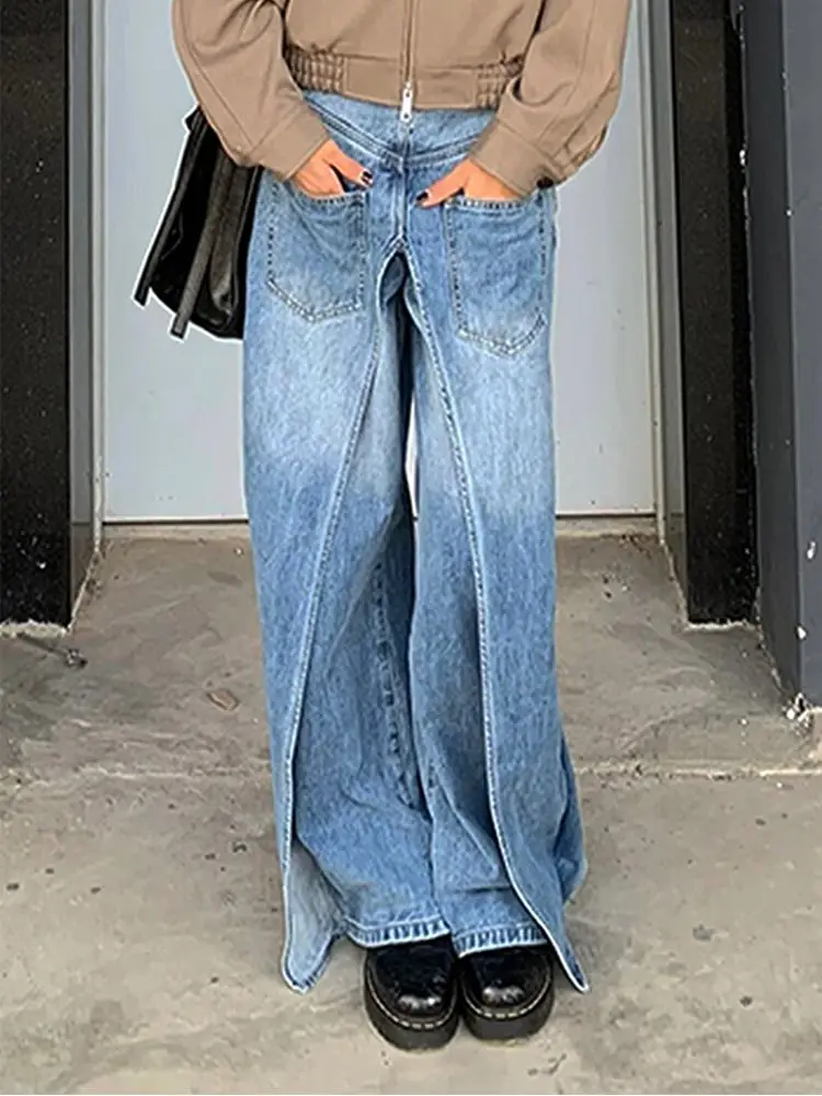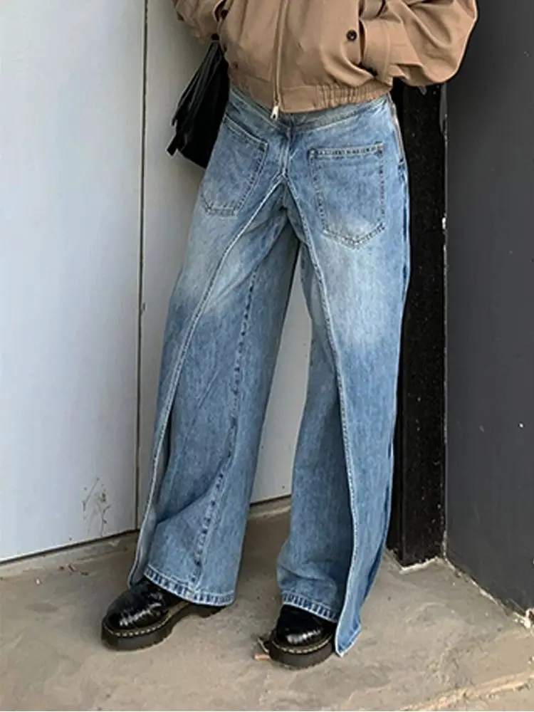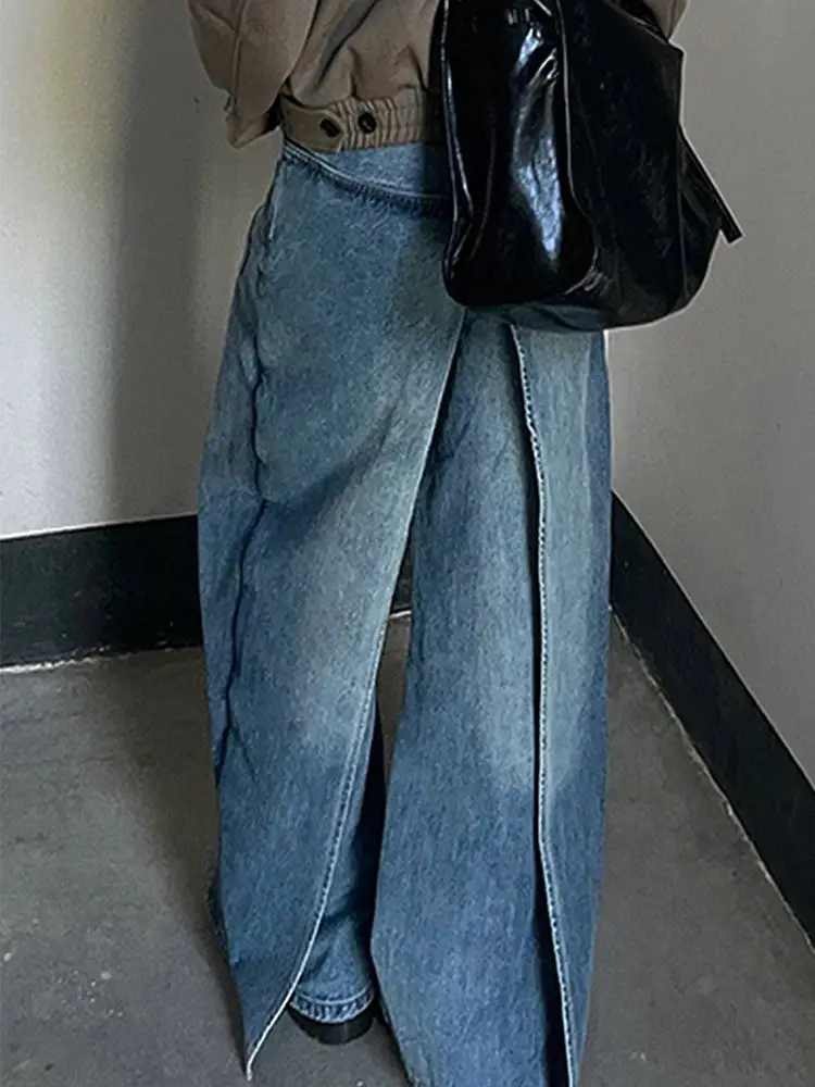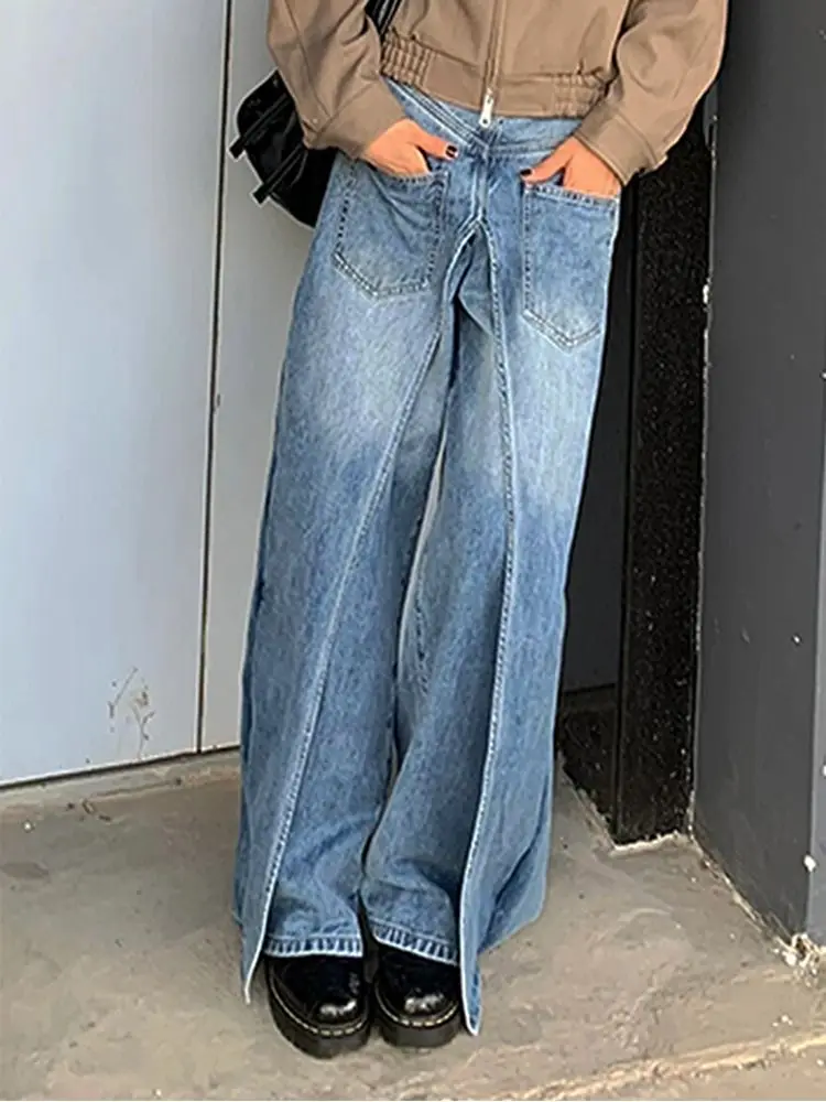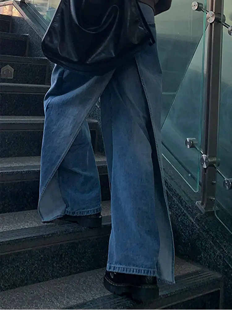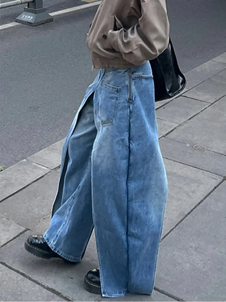 DERMEARNE Autumn And Winter Jeans High Street Large Size Vintage Reversible Deconstruction Vibe Wide Leg Full Length Pants