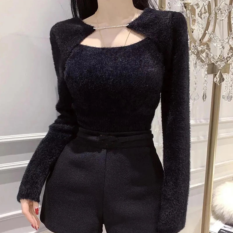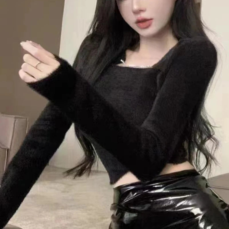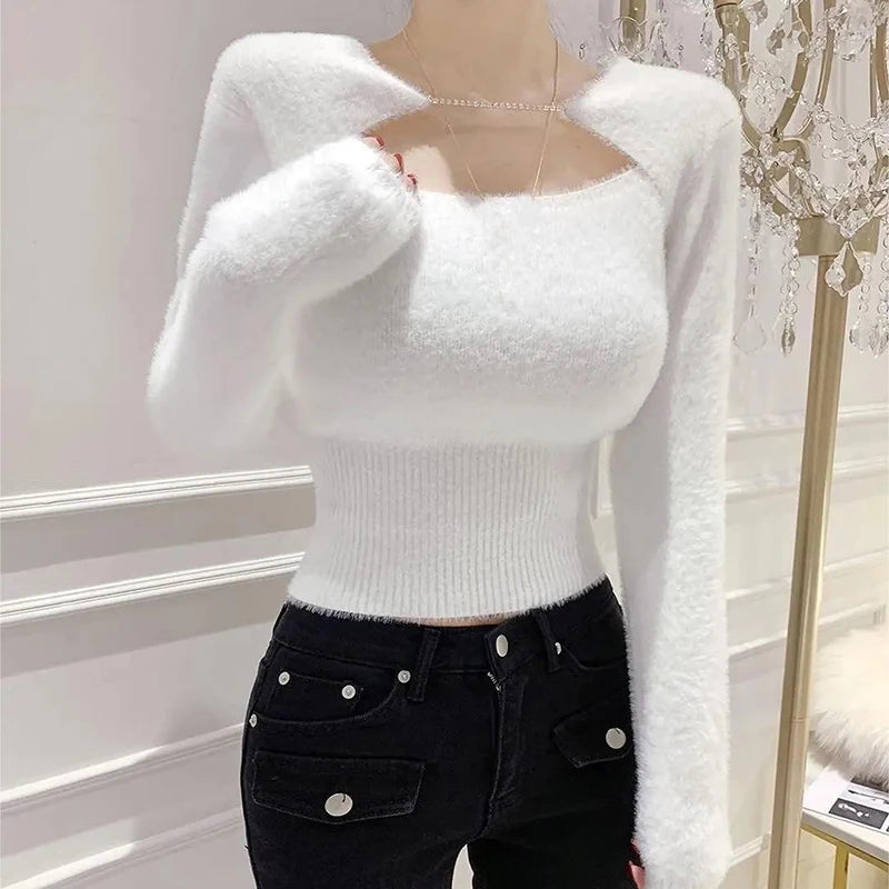 DERMEARNE Autumn Winter Korean Style Clothes Soft Pullovers Sweater Women Long Sleeve Sexy Slim Knitted Crop Tops Female Sueters De Mujer