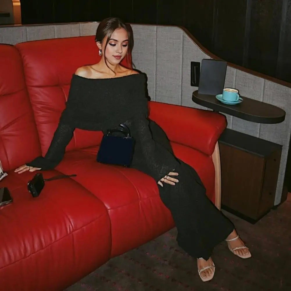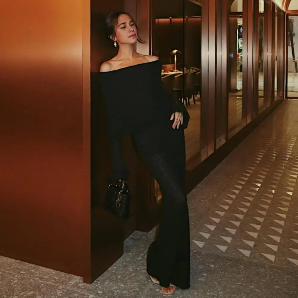 Design: Embrace a chic and sophisticated look with this form-fitting maxi dress featuring a trendy hip-hugging silhouette that exudes elegance and allure. The one-line collar detail adds a touch of modern flair to the overall design.