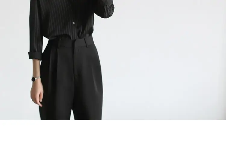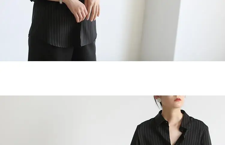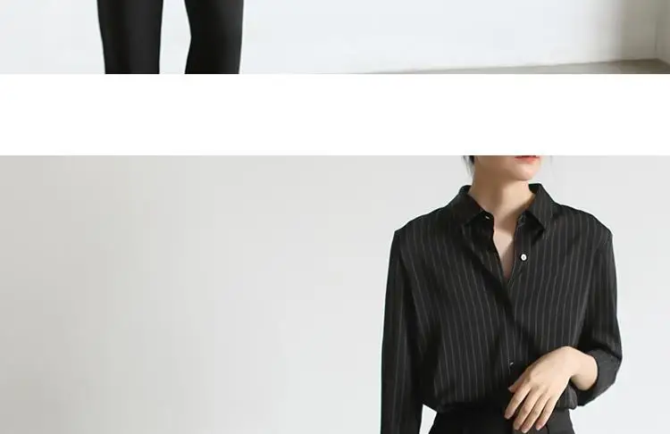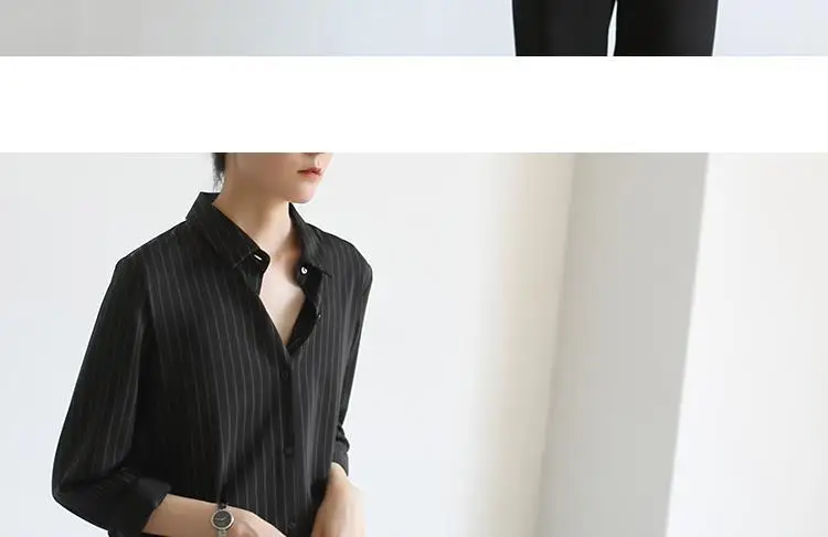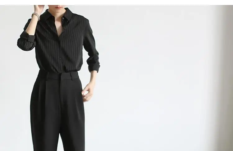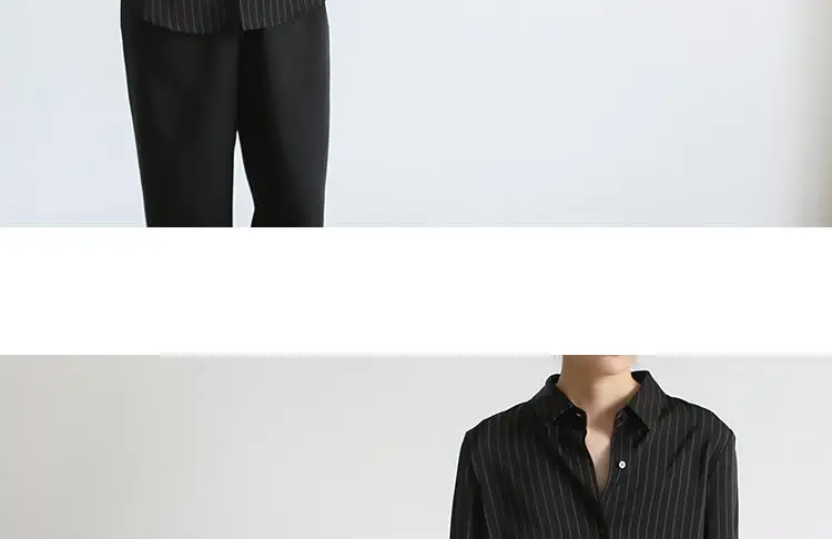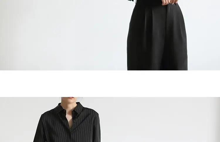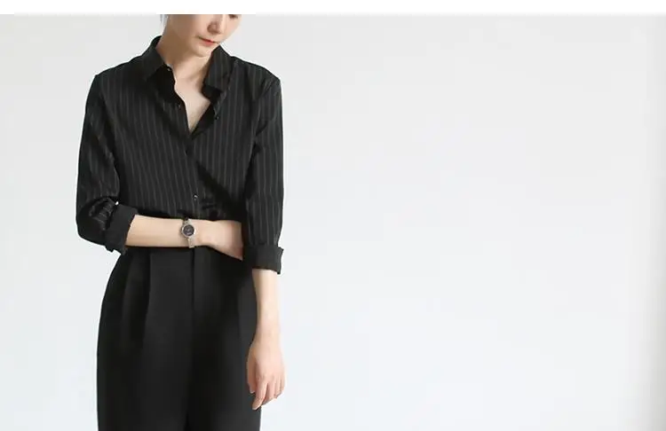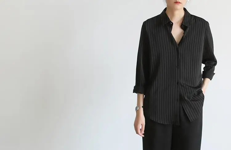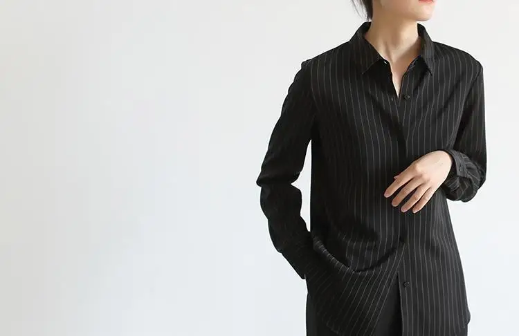 DERMEARNE Black Shirt for Women's Spring Autumn New Long Sleeve Polo Neck Striped Loose Casual Blouse Top Fashion Vintage Clothing