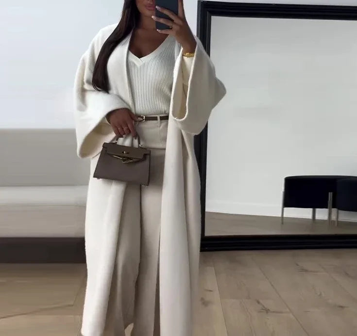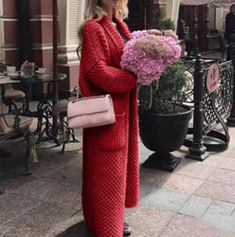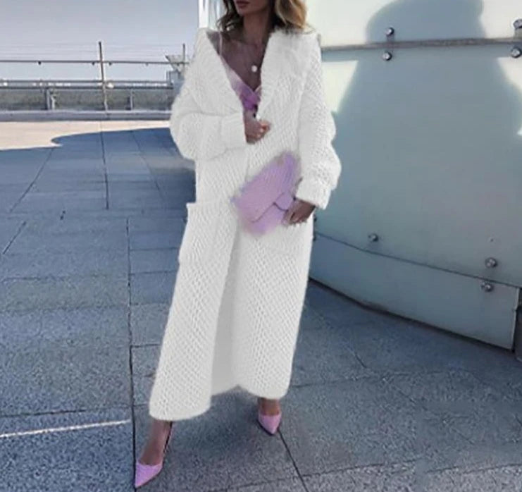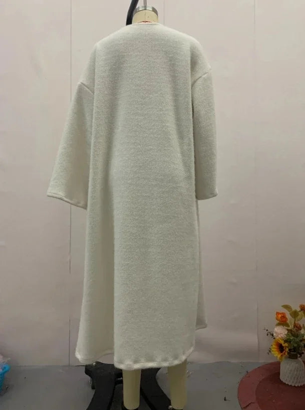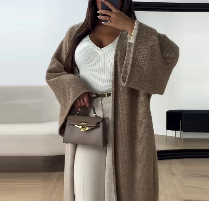 DERMEARNE Cardigan Women Autumn Winter Thick Cozy Loose Long Sweater Coat Full Sleeve Knitted Woolen Robe Coat Jacket Open Stitch Overcoat