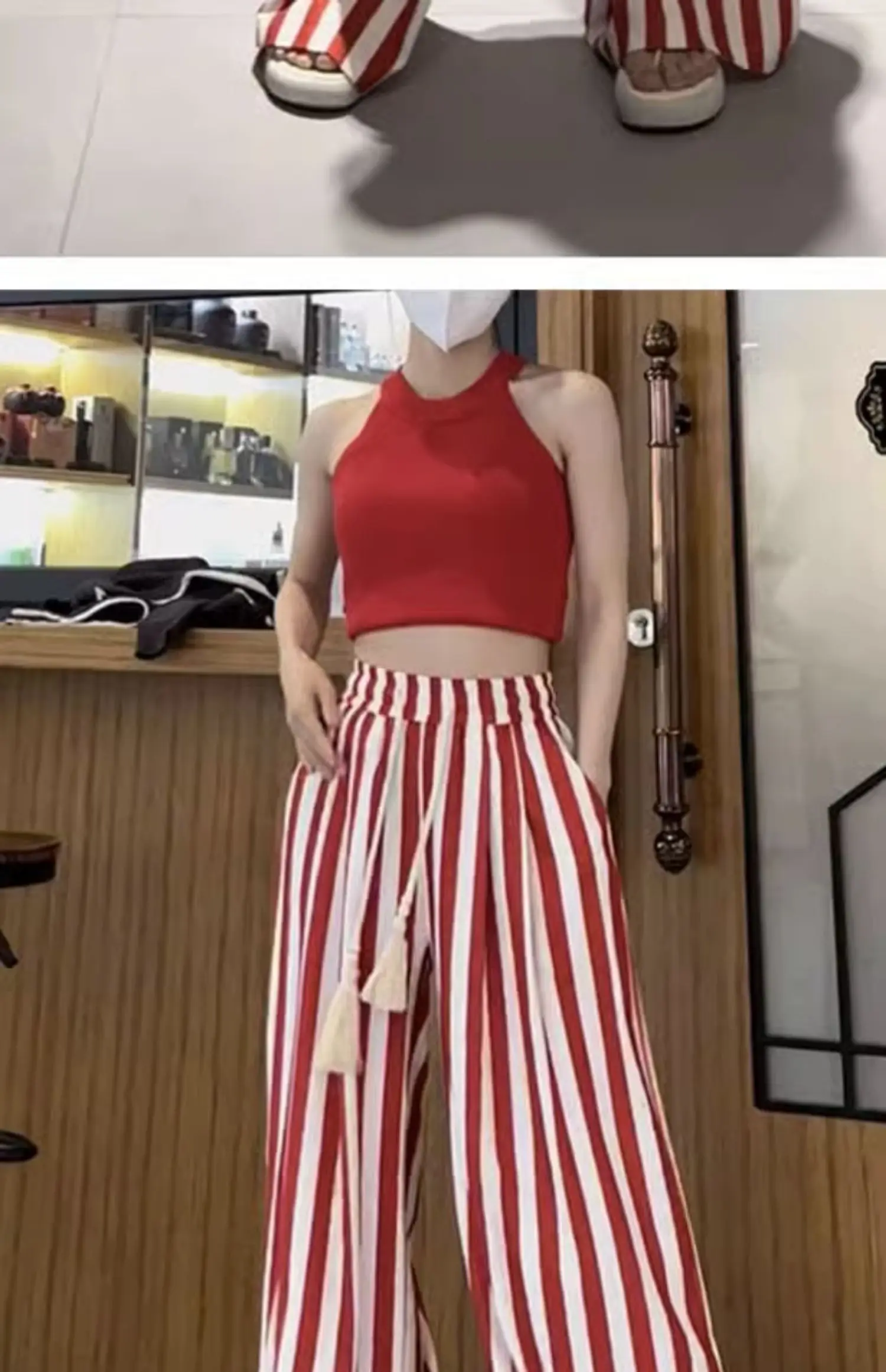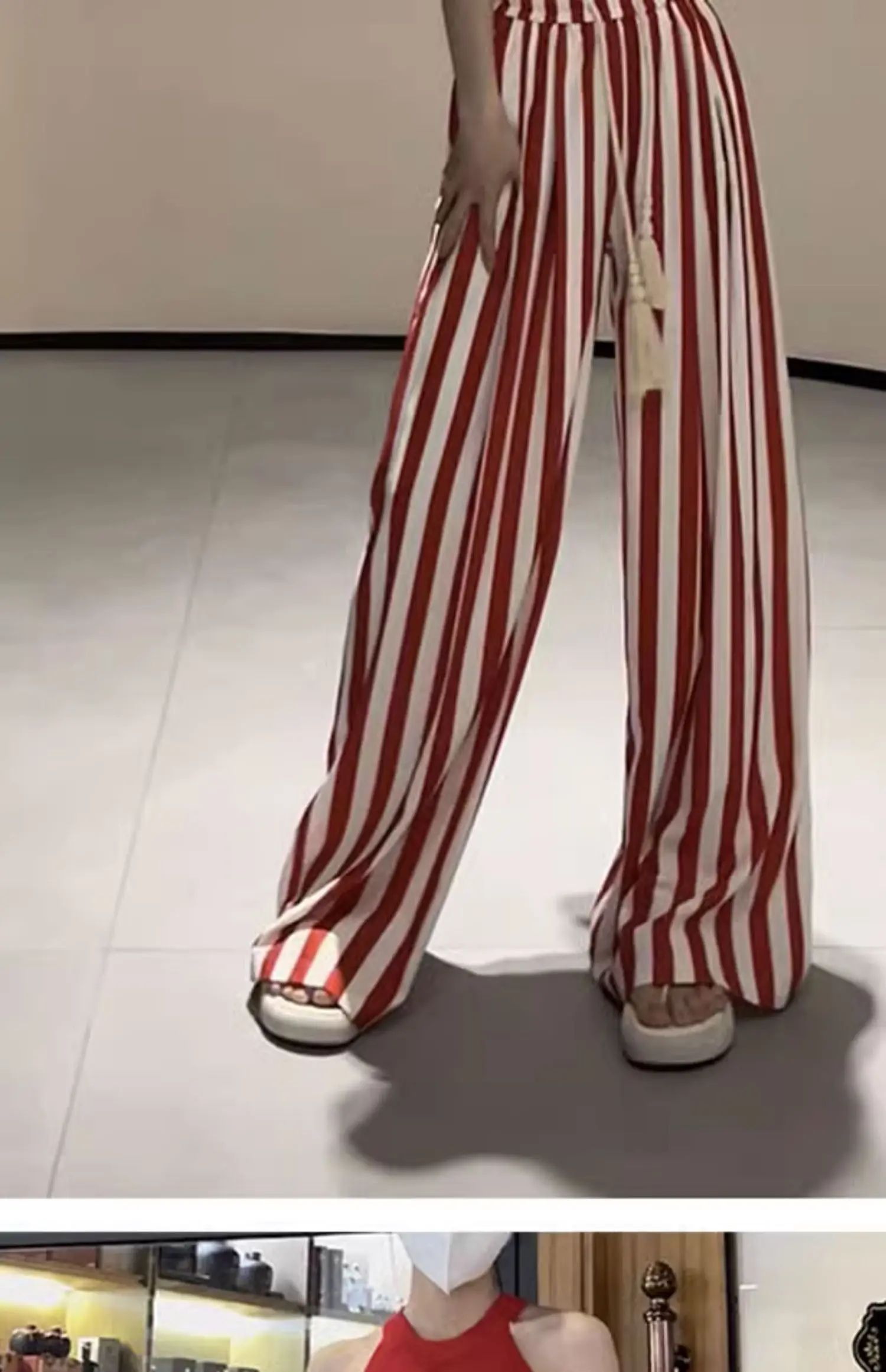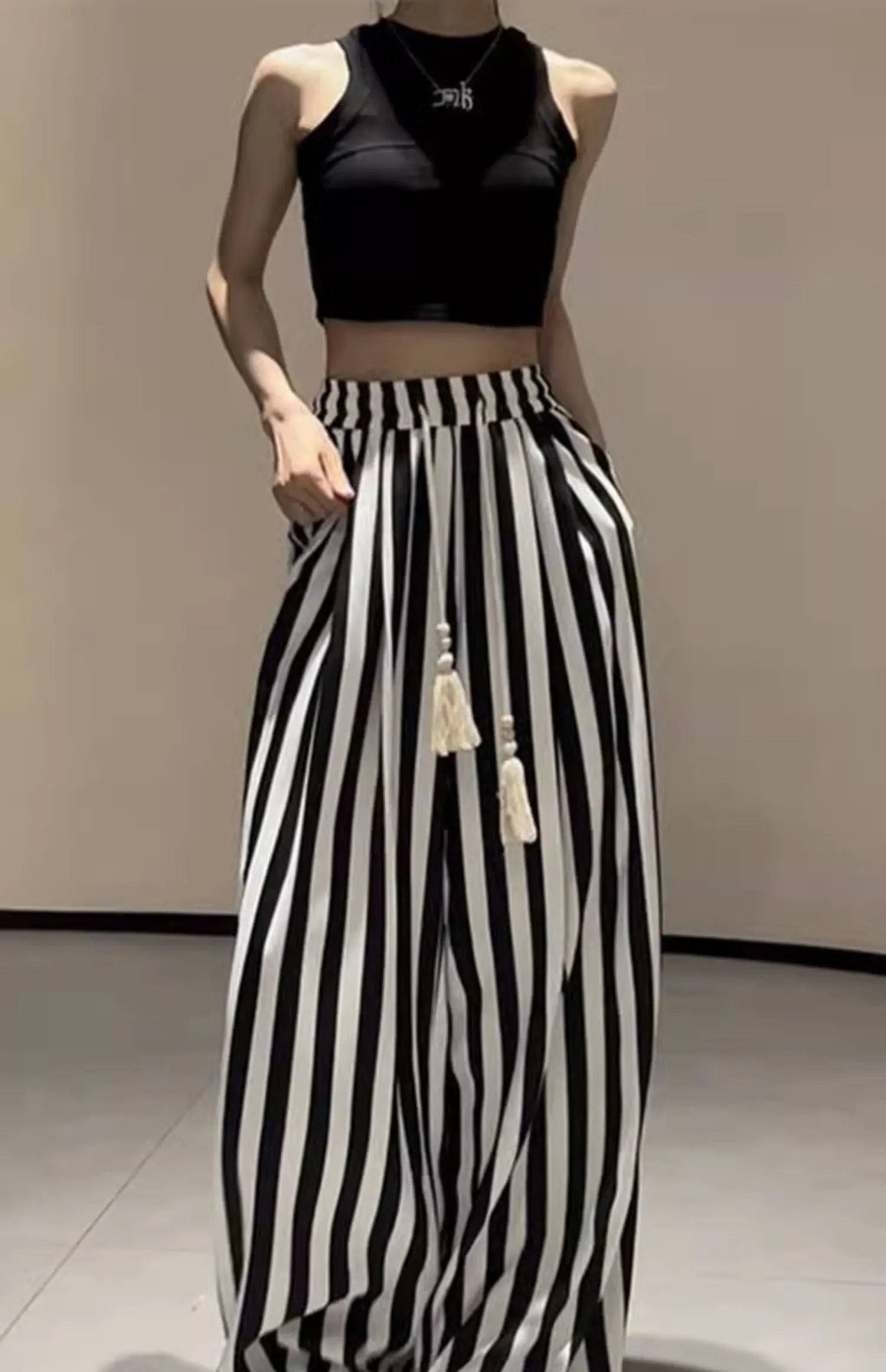 DERMEARNE Casual Retro Striped Print High Waist Wide Leg Pants Women's Fashion Loose Vintage Soft Full Length Trousers 2025 Summer