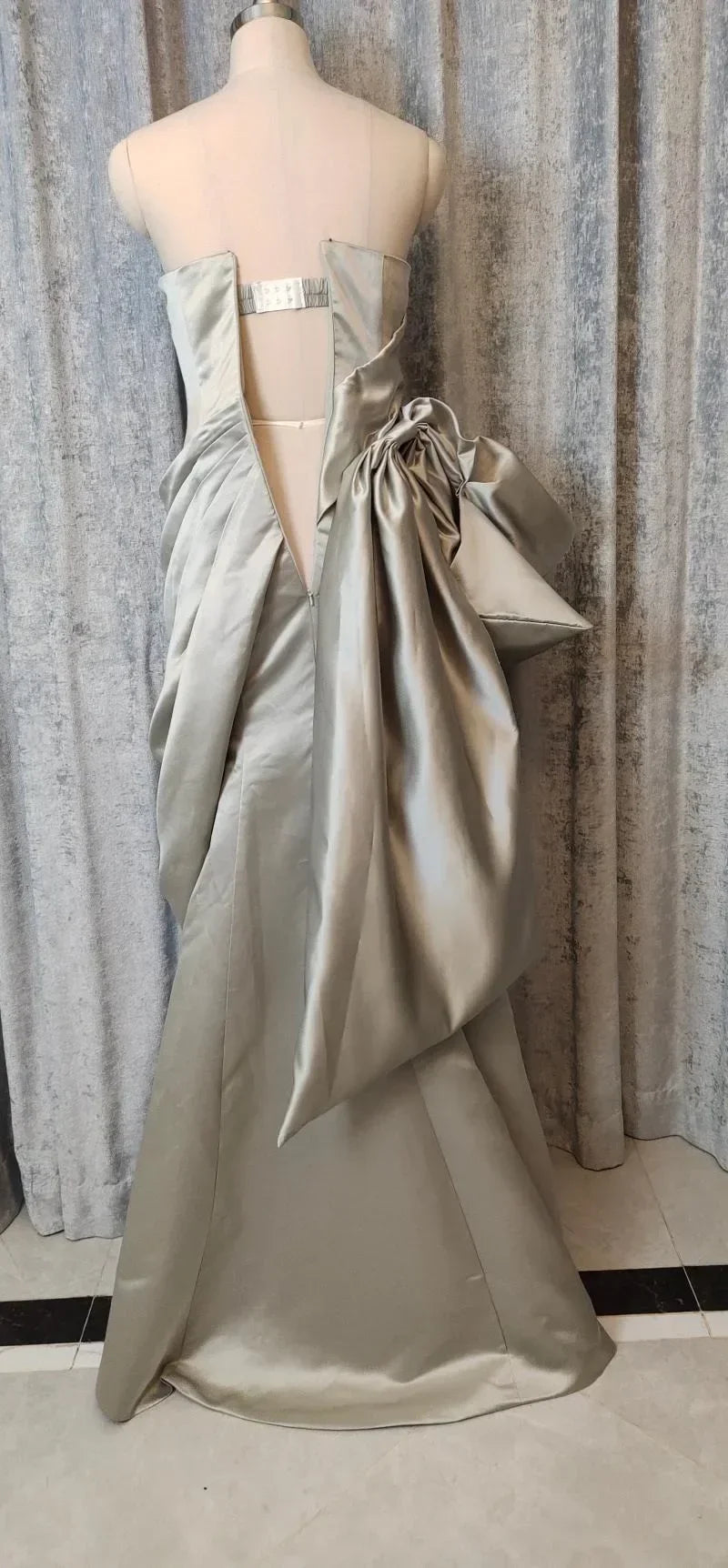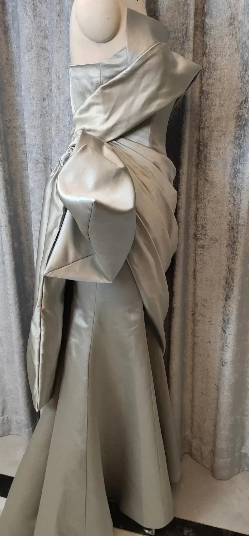 DERMEARNE Customized Elegant Customized Women's Party Dress with Shoulder-baring Design and Shiny Material Fold bow design