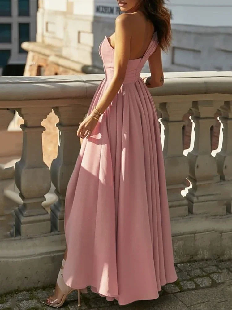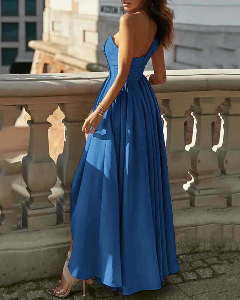 DERMEARNE Elegant Maxi Dresses For Women 2025 Sexy One Shoulder Ruched Asymmetrical Ruffles Bandage Dress Women Party Vestidos Mujer