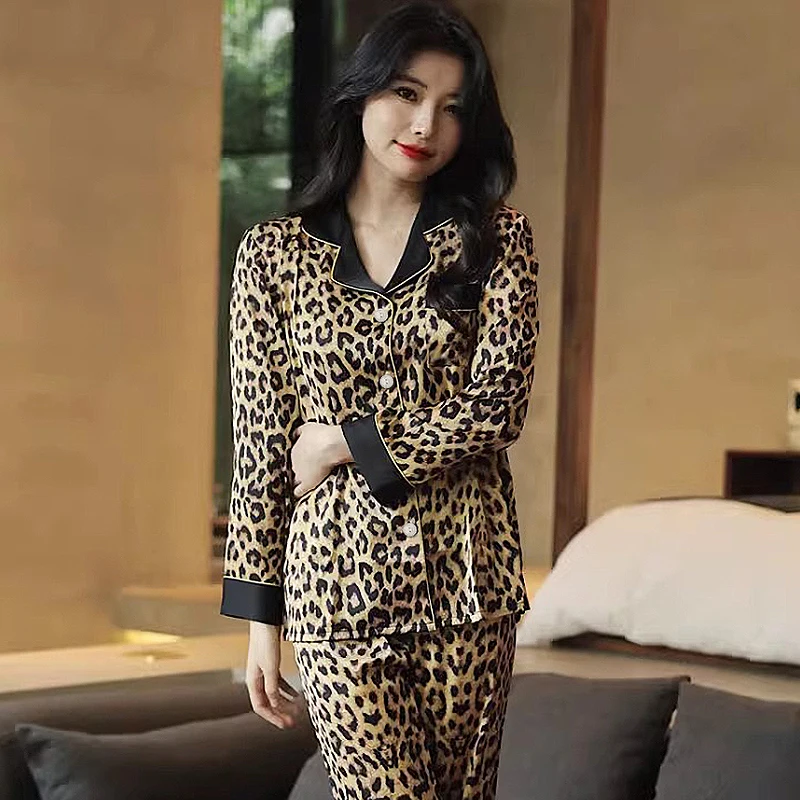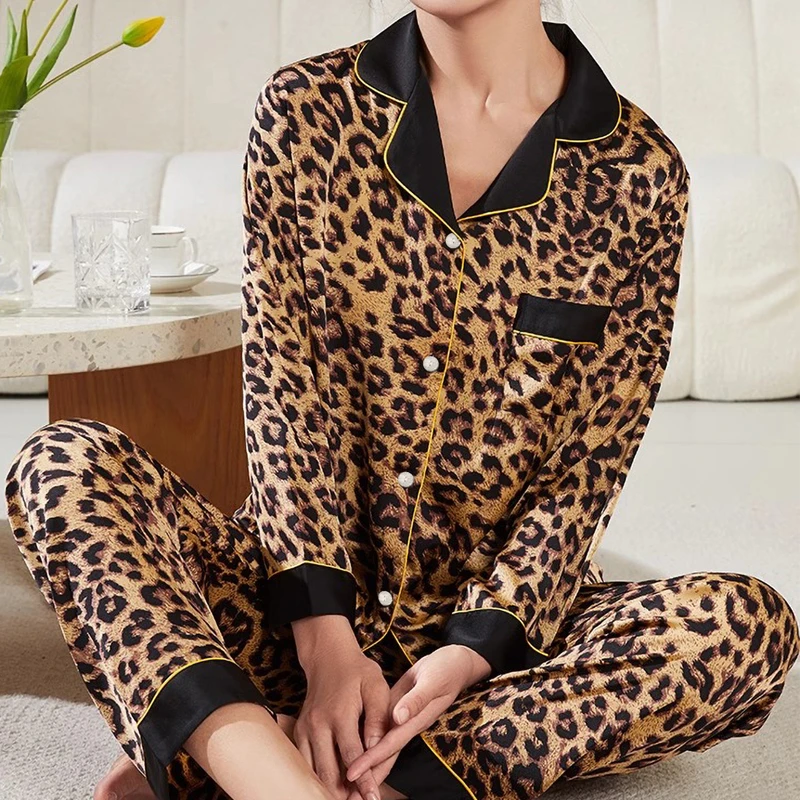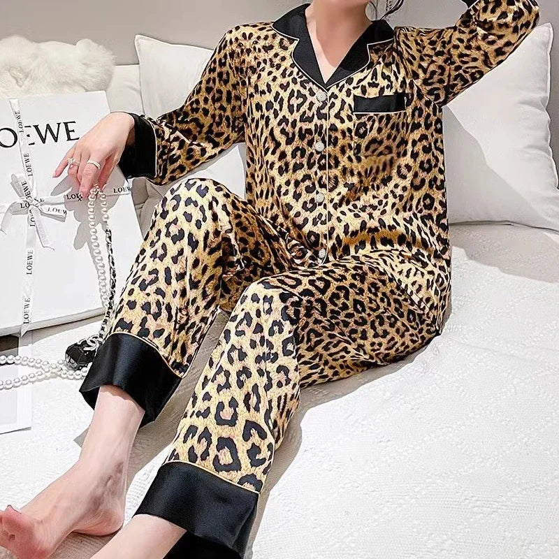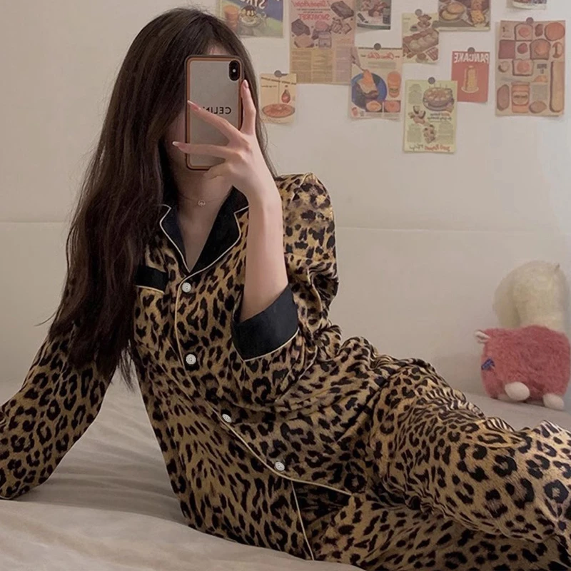 DERMEARNE Europe & American Retro Leopard Women's Pajamas Elegant Trendy Print Lazy Fashion Sleepwear 2025 New Summer 2pcs Casual Homewear