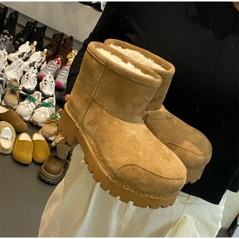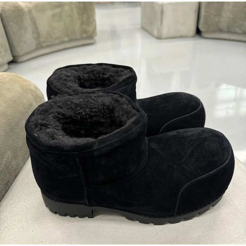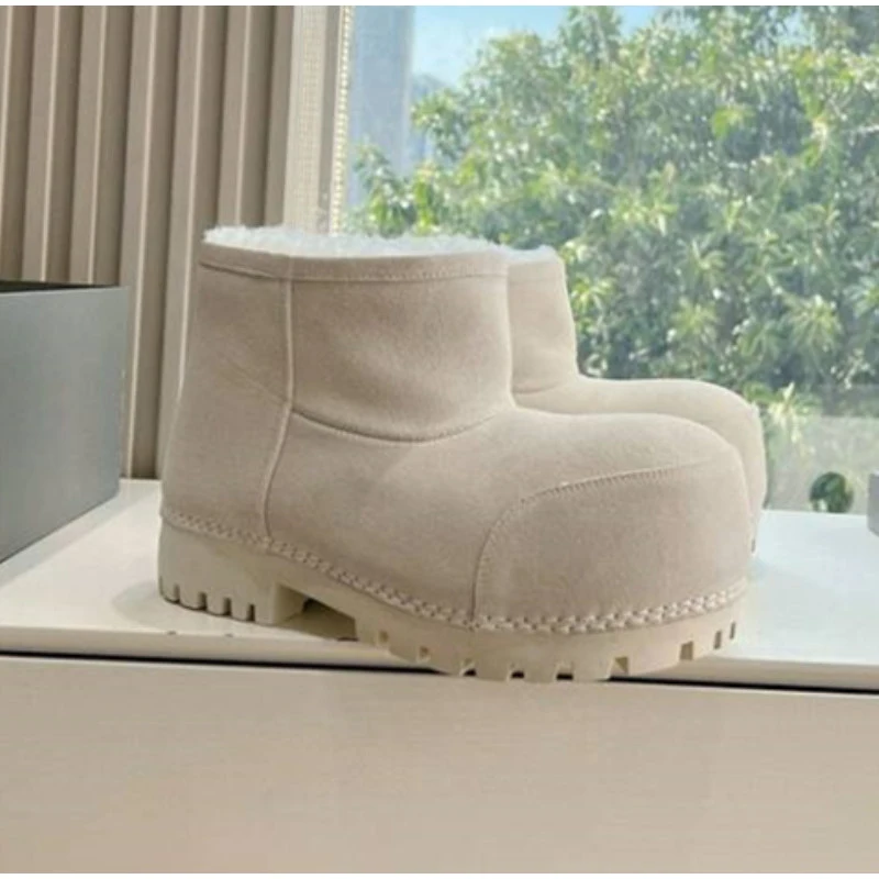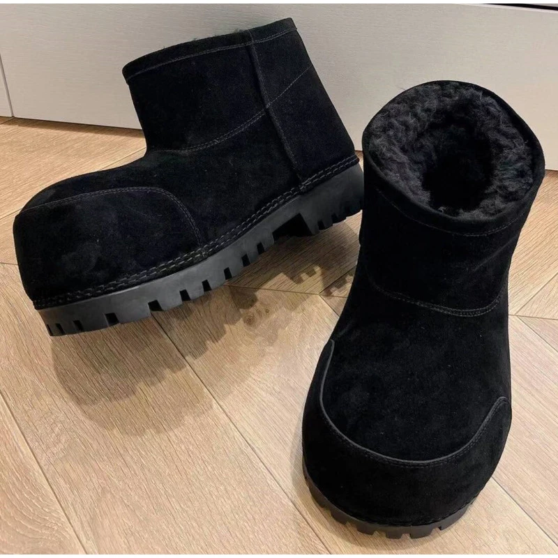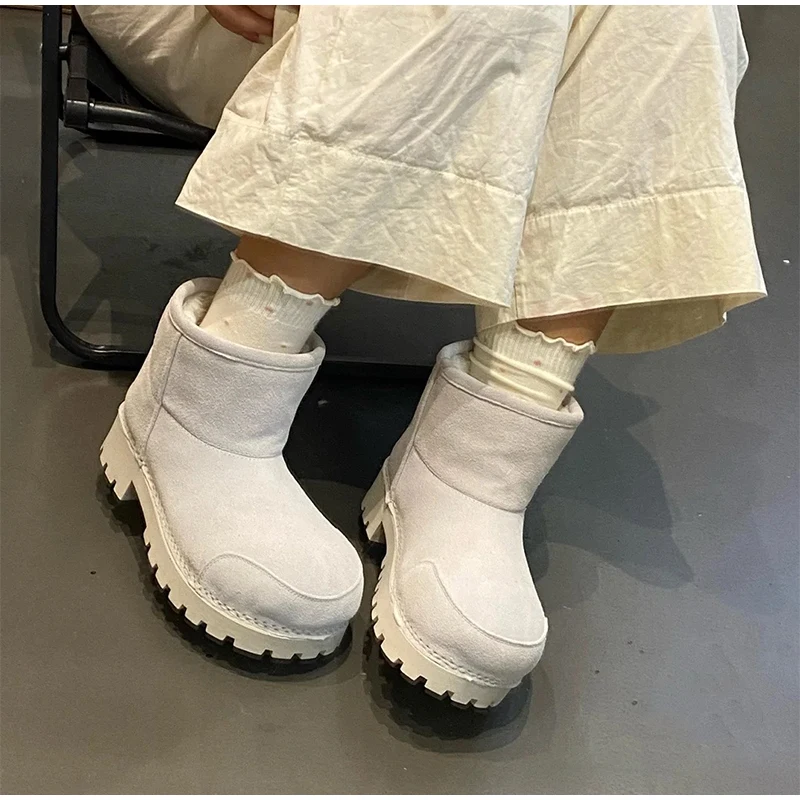 Dermearne Fashion Solid Casual Snow Boots Large Size Platform Ankle Boots Winter Slip-on Short-calf Women Boots Snow Shoes High Quality