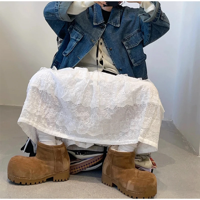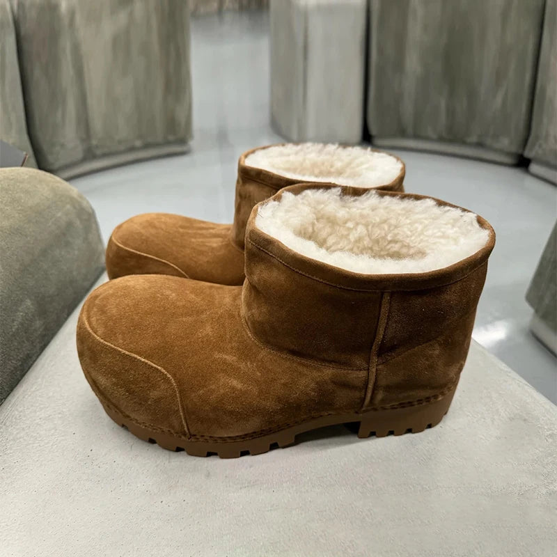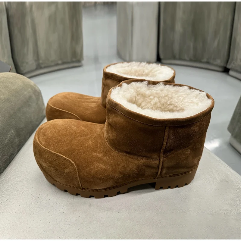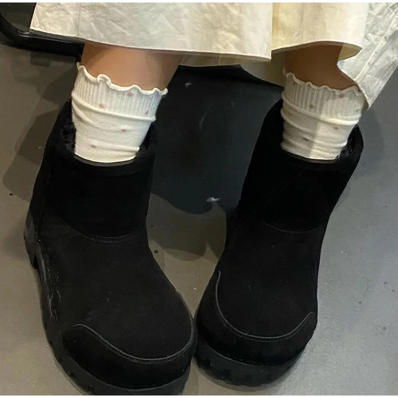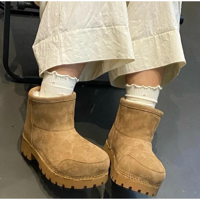 Dermearne Fashion Solid Casual Snow Boots Large Size Platform Ankle Boots Winter Slip-on Short-calf Women Boots Snow Shoes High Quality