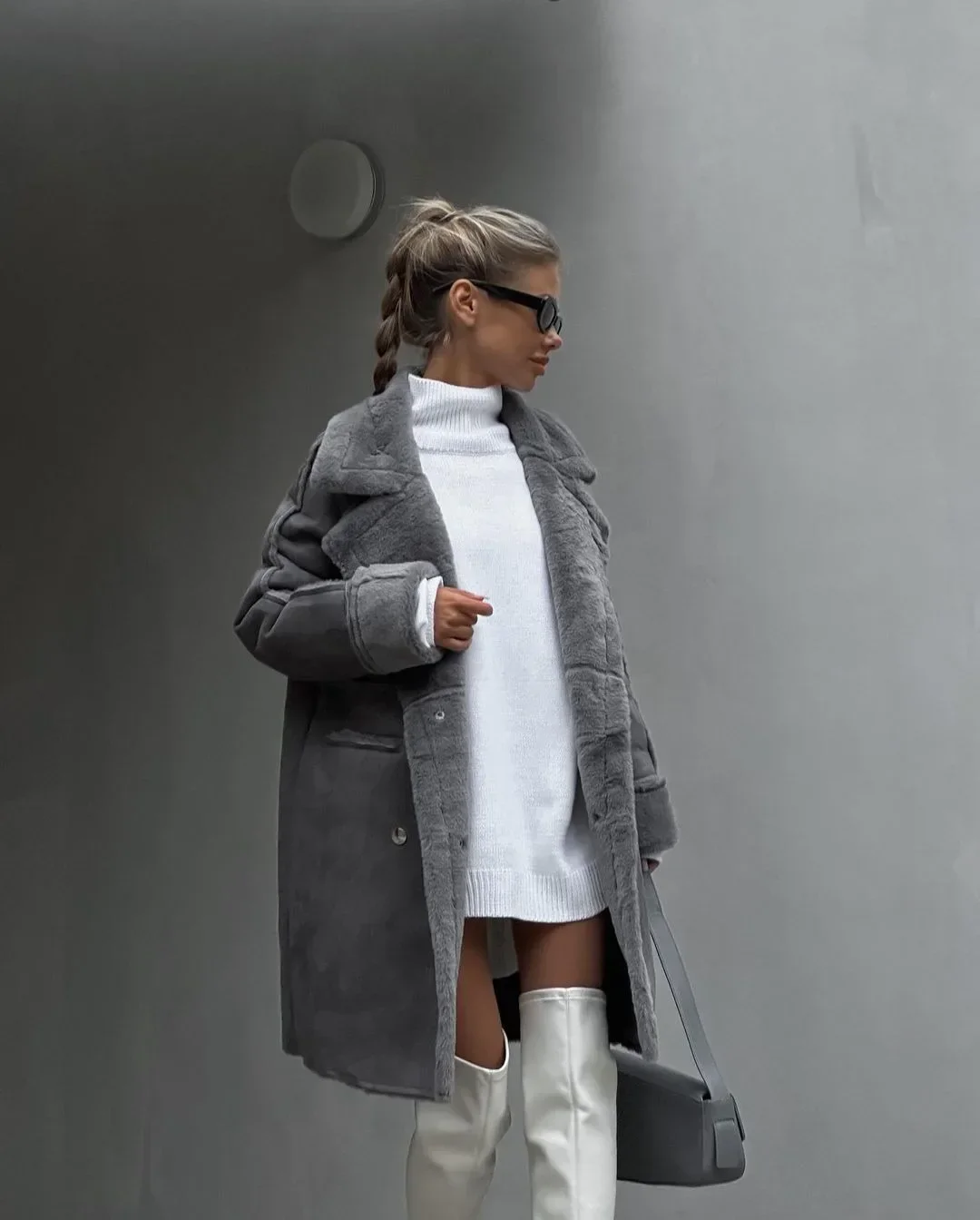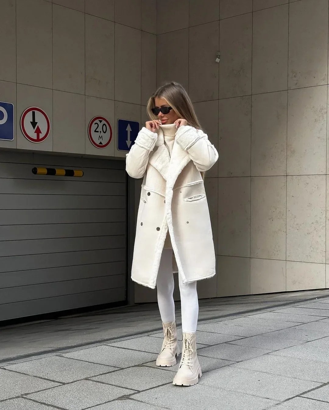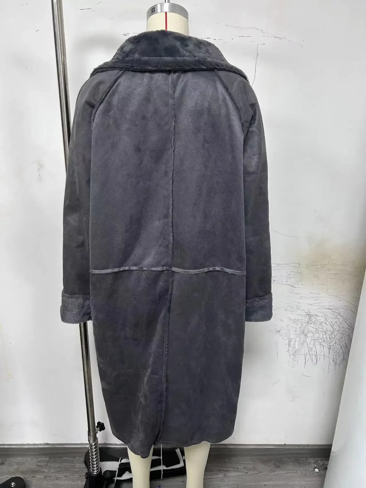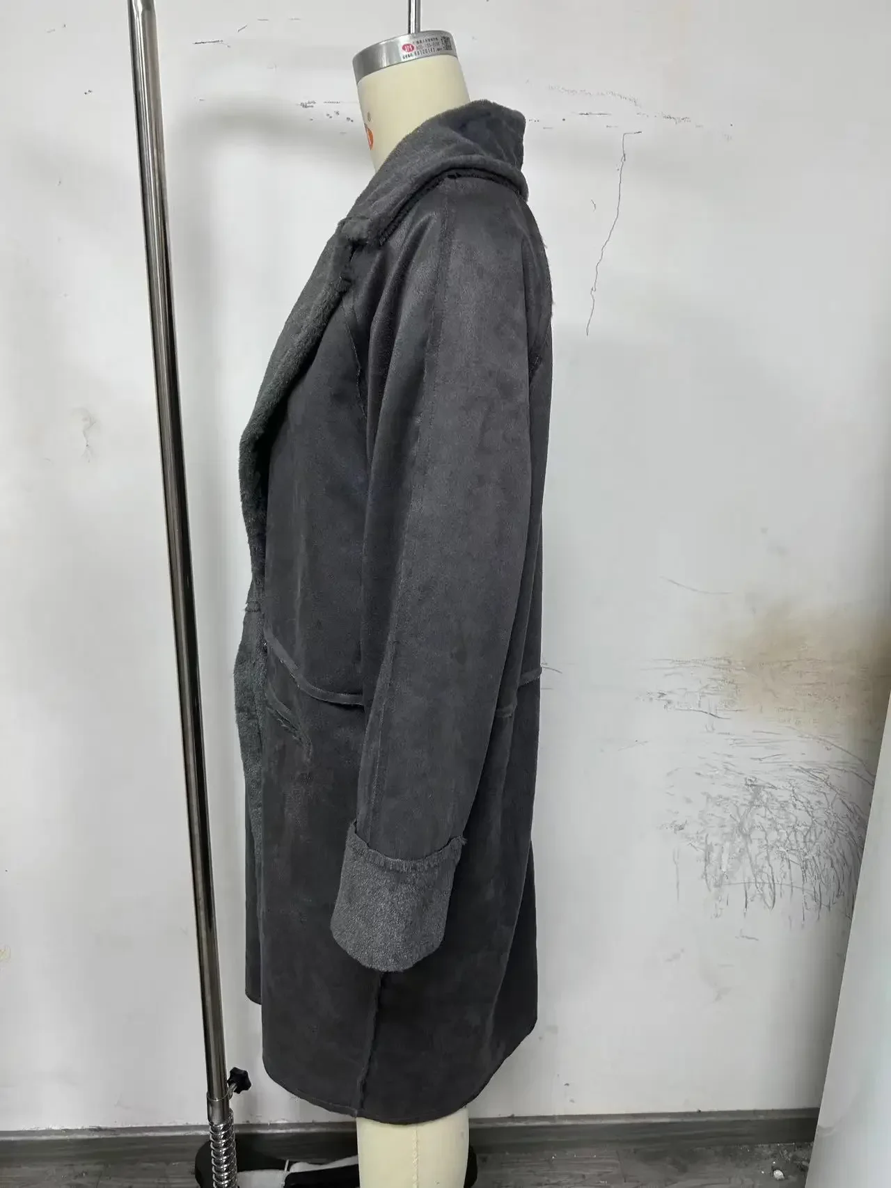 DERMEARNE Faux Fur Long Jacket Women Oversized Lapel Teddy Coat Winter Thick Warm Lamb Wool Jacket Lady Casual Fashion Vintage Outerwear