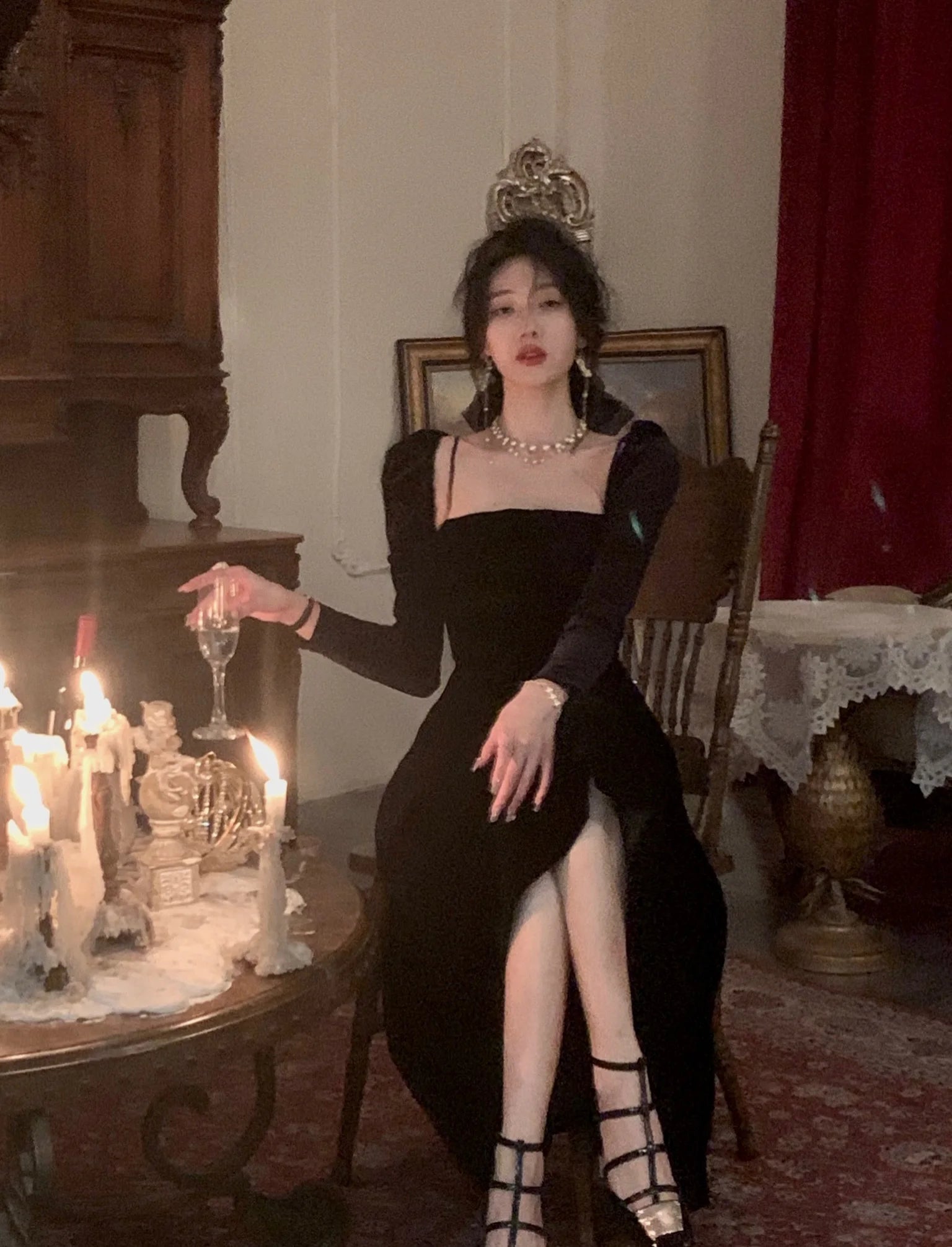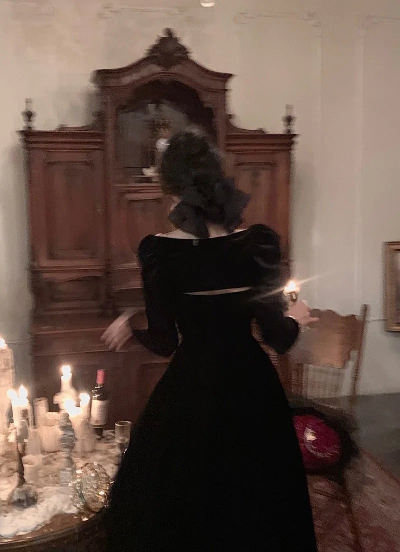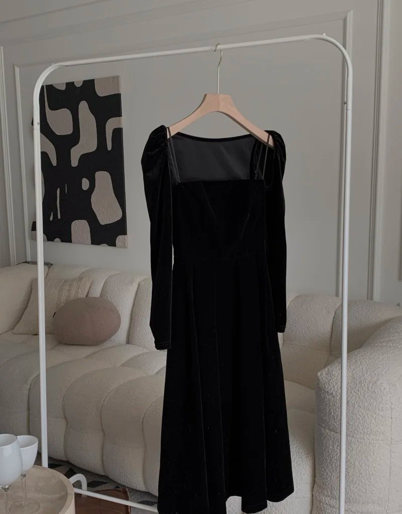DERMEARNE French Black Velvet Spaghetti Strap Midi Dresses for Women 2025 Autumn Elegant Party 2-piece A-line Evening Prom Female Clothing