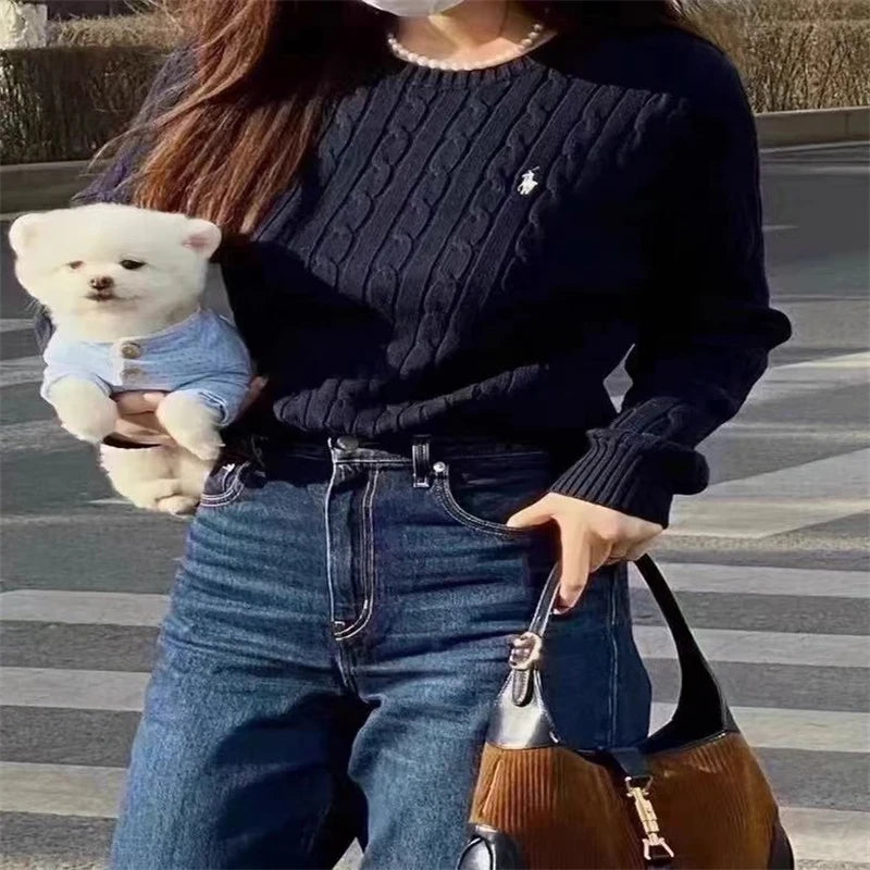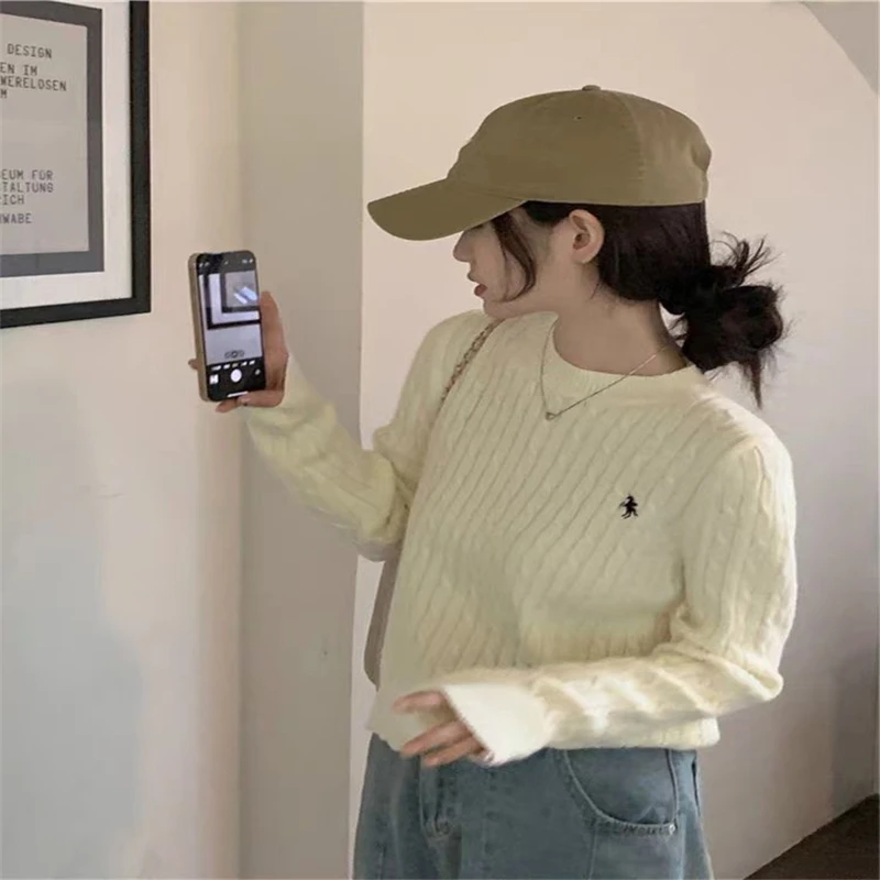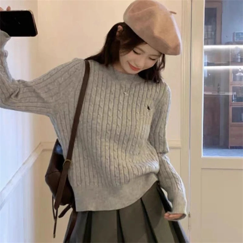 DERMEARNE Fried Dough Twists Embroidery Round Neck Knitted Autumn And Winter New Casual Pullover Sweater