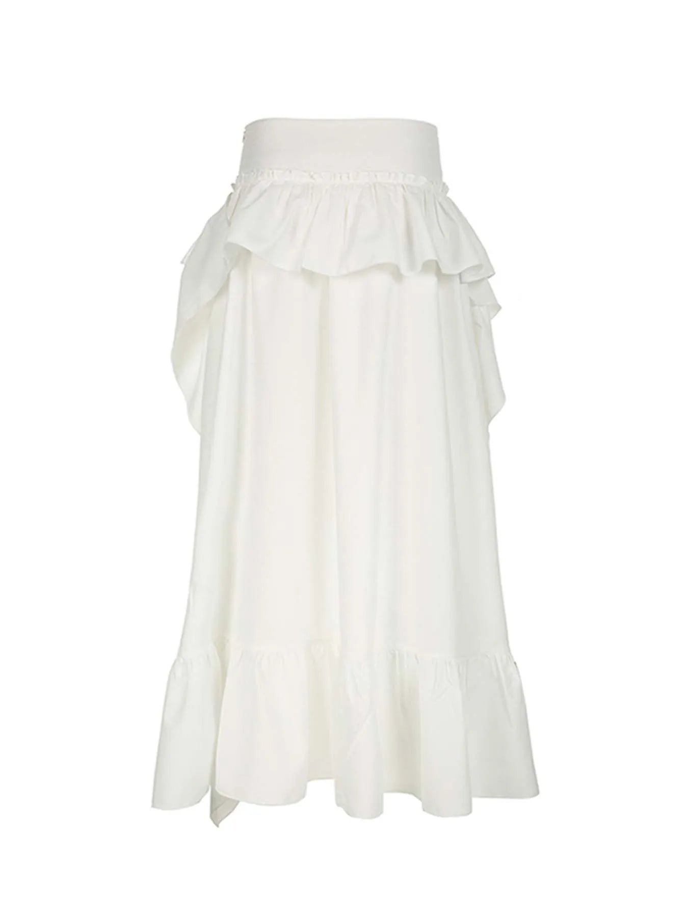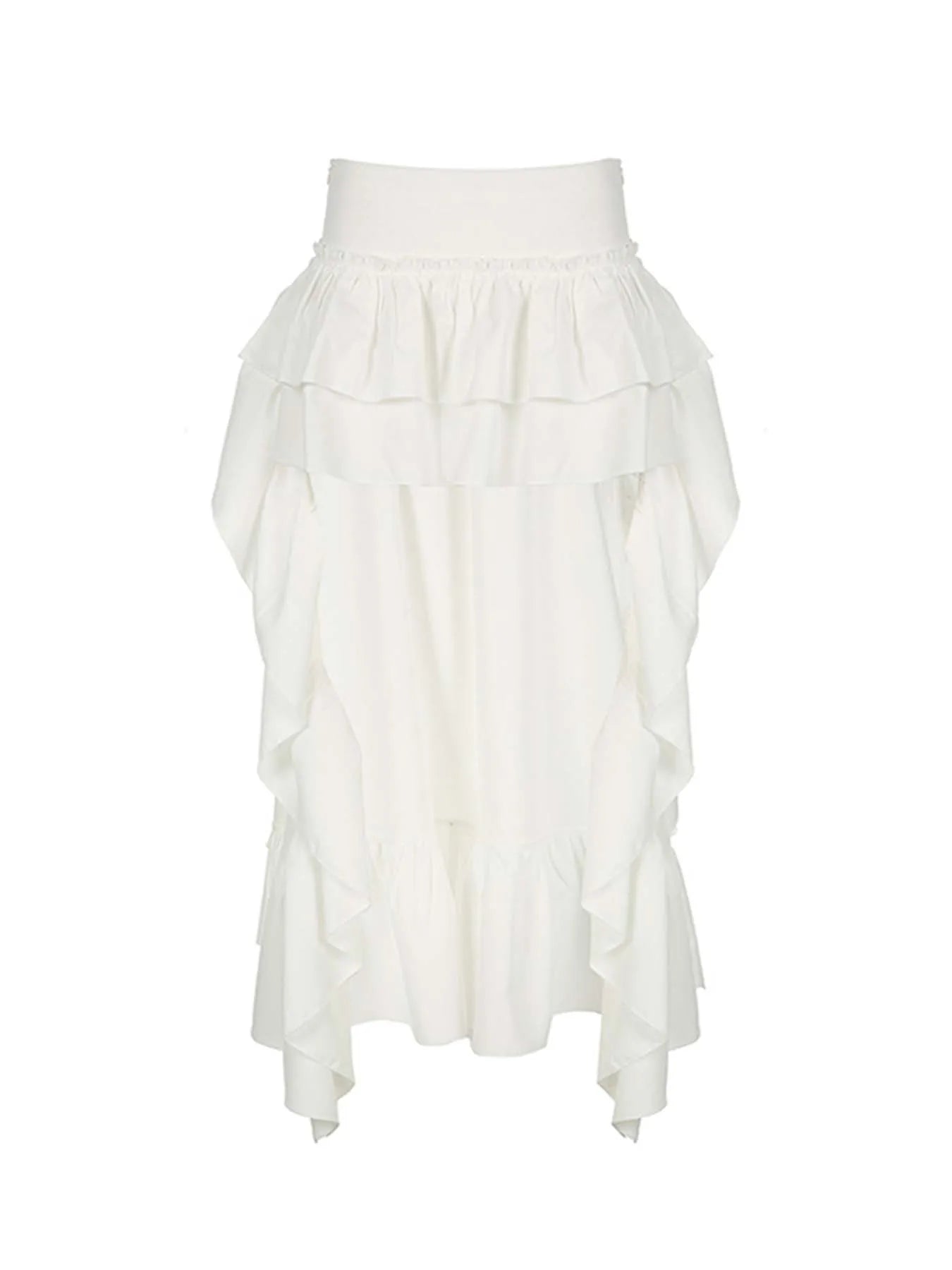 DERMEARNE Front Short And Back Long Asymmetrical Ruffles Skirts Womens Summer Vacation Boho Skirt