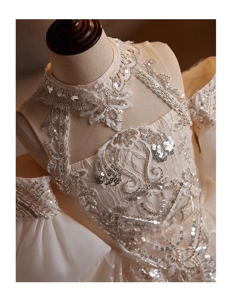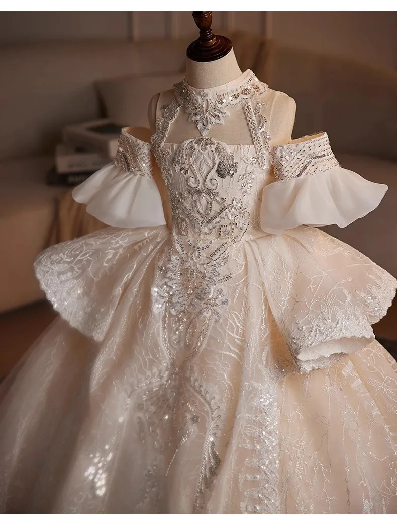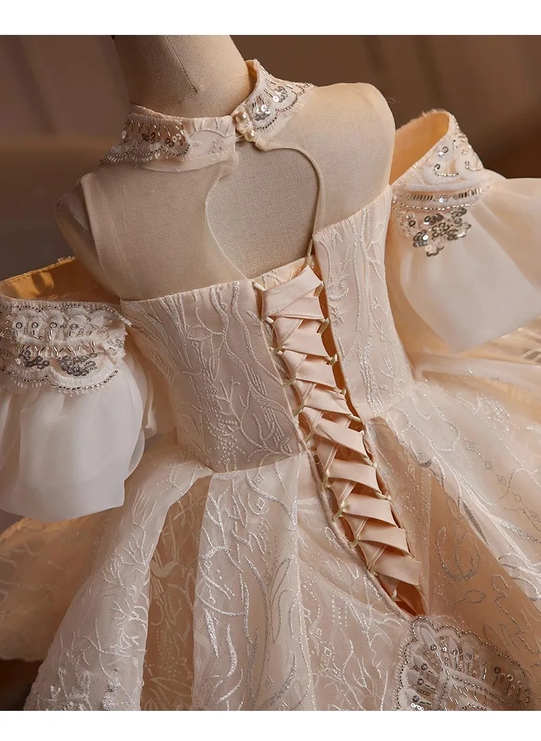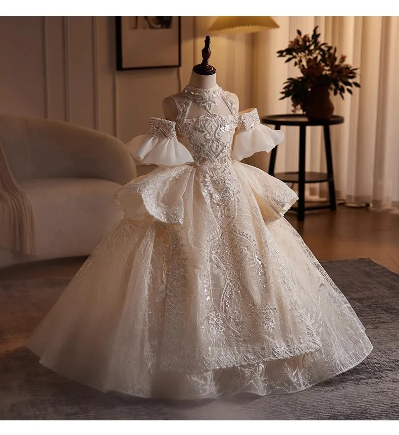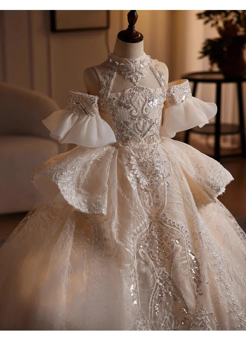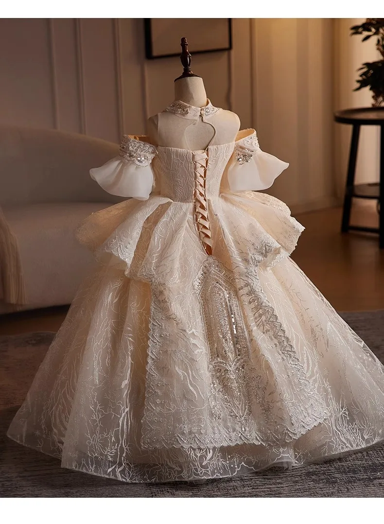 DERMEARNE Girls High-end Dress Fluffy Yarn Light Luxury Niche Party Princess Dress Children Host Piano Performance Dress Dance