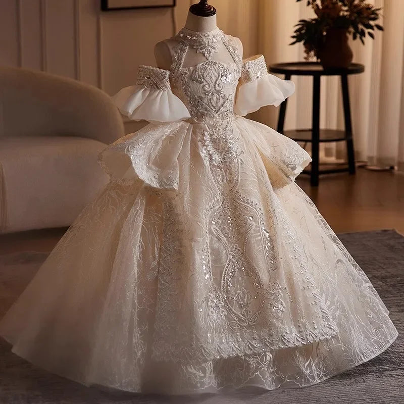 DERMEARNE Girls High-end Dress Fluffy Yarn Light Luxury Niche Party Princess Dress Children Host Piano Performance Dress Dance