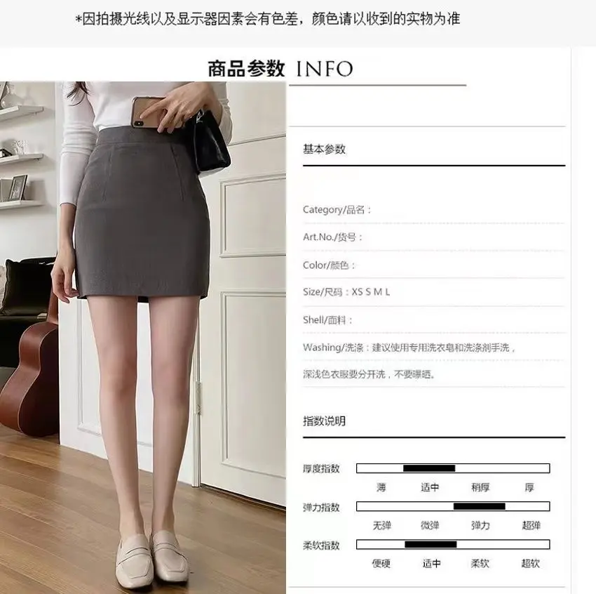 DERMEARNE Gray Suit for Women Summer New High-waisted One-step Skirt Professional Zipper Short Skirt Trendy Elastic Hip-covering Skirt