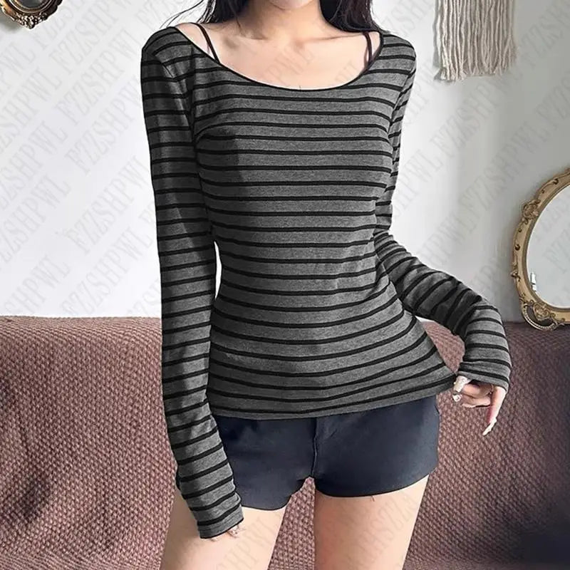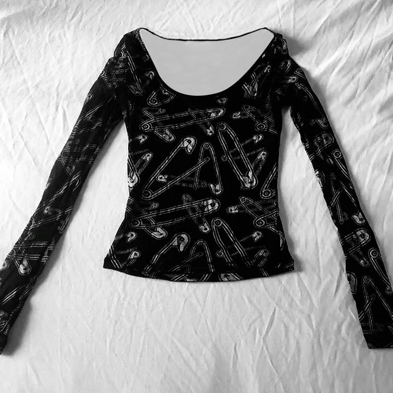 DERMEARNE Grunge Goth Y2k Long sleeve Top Aesthetics Graphic Print Vintage Punk Baby Tee Streetwear Casual Fashion Long sleeve T-shirt EMO