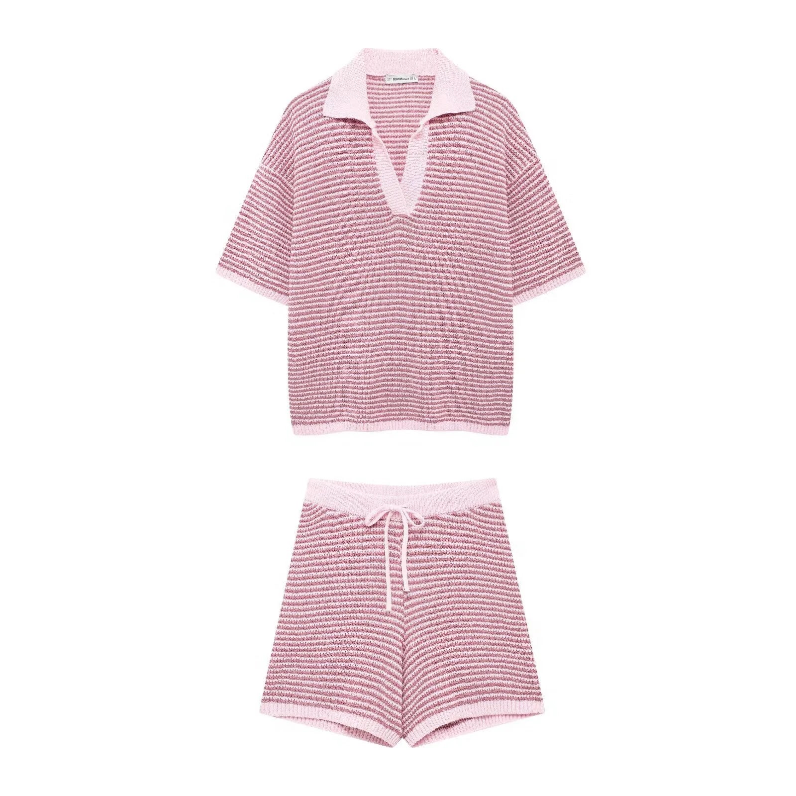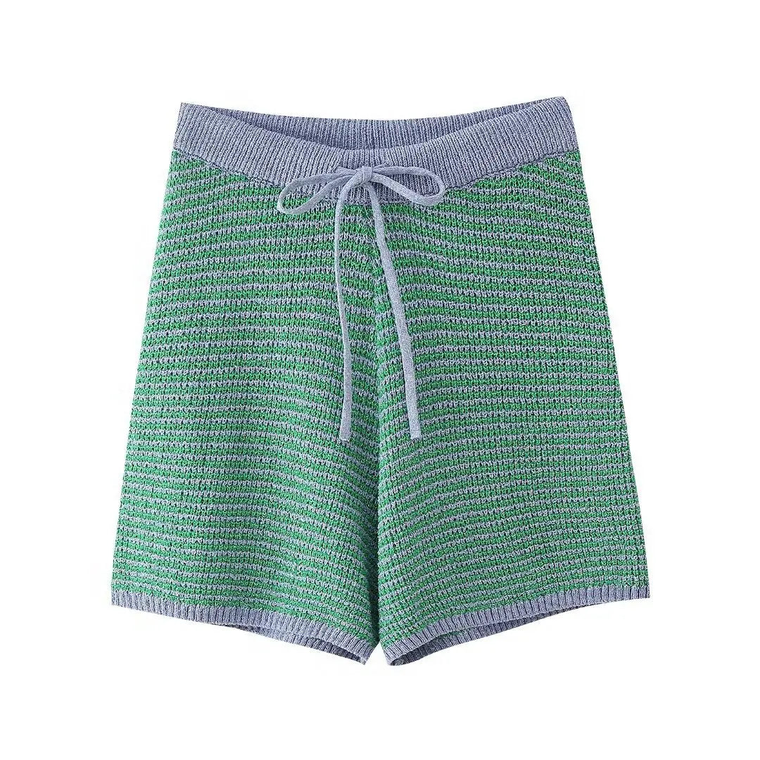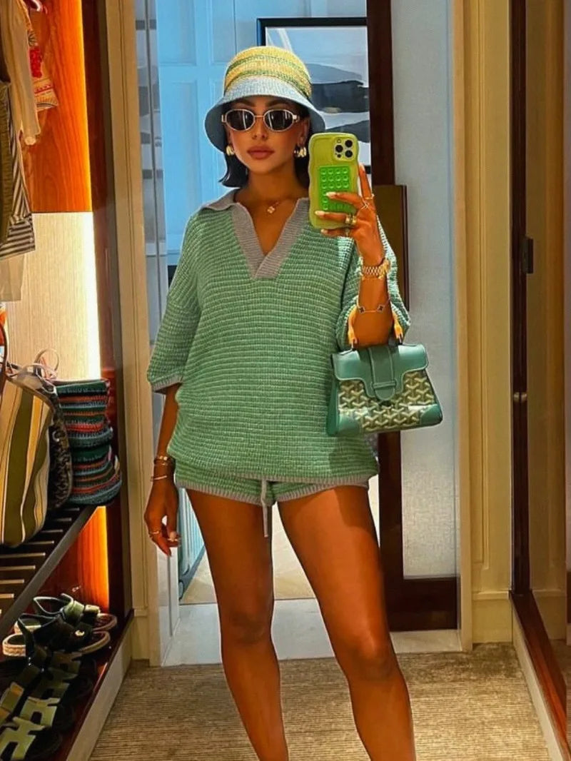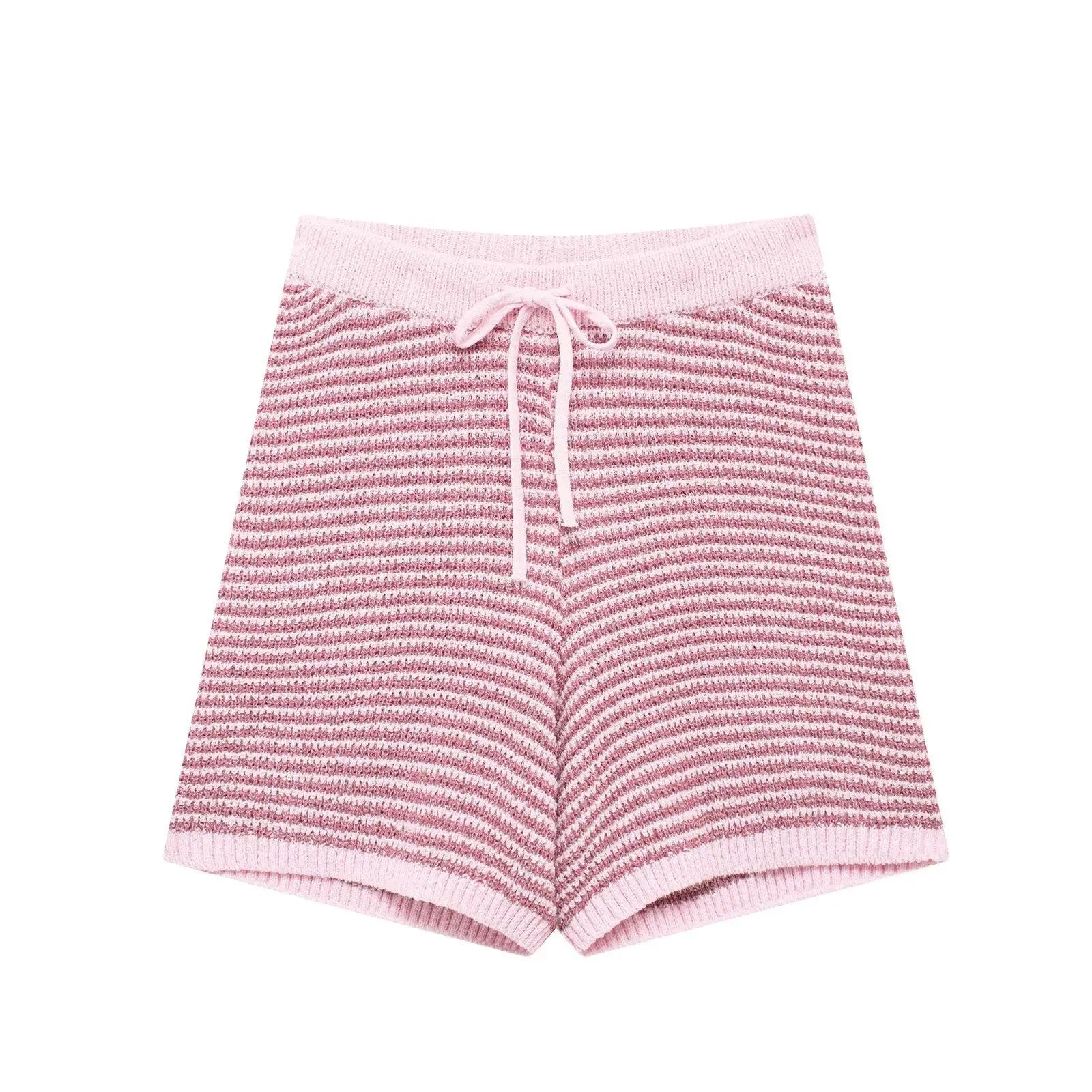DERMEARNE Holiday Retro Shorts Suit Summer New Women V Neck Knitted Tops Casual Lace Up Shorts Korean Fashion 2 Piece Sets Womens Outfits