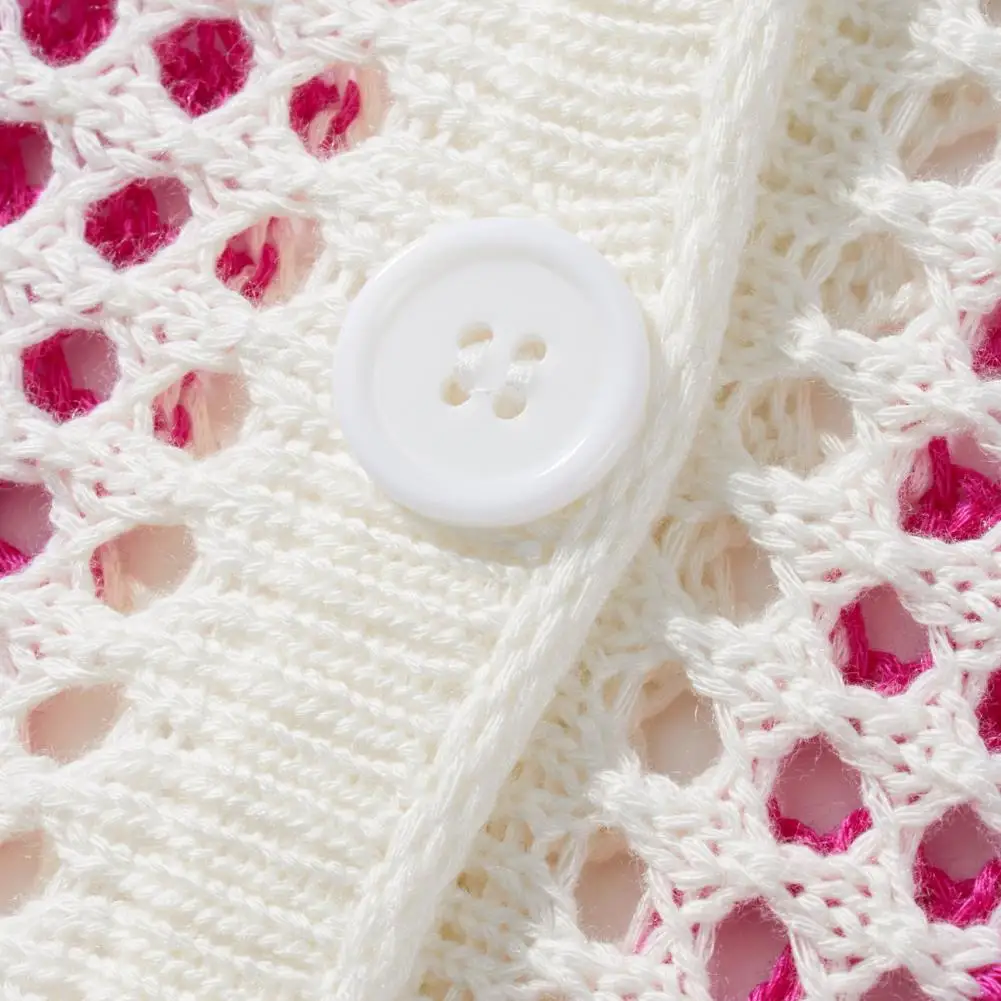 DERMEARNE Hollow Knit Clothes Stylish Women's Knitted Shirt Pants Set with Hollow Out V Neck Single-breasted Blouse High Waist for Summer