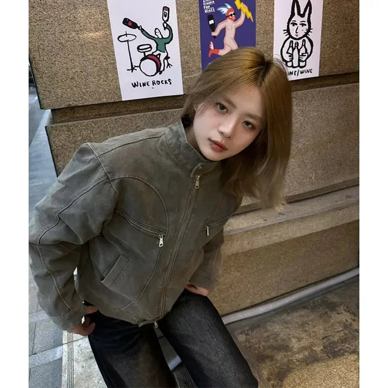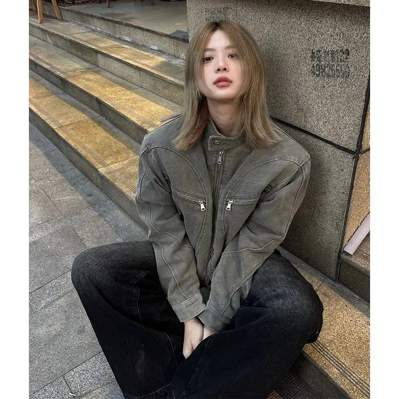 DERMEARNE Korean Retro Washed Short Denim Jacket Men's Spring and Autumn Personalized Niche Design Stand Collar Y2K Jacket Tops