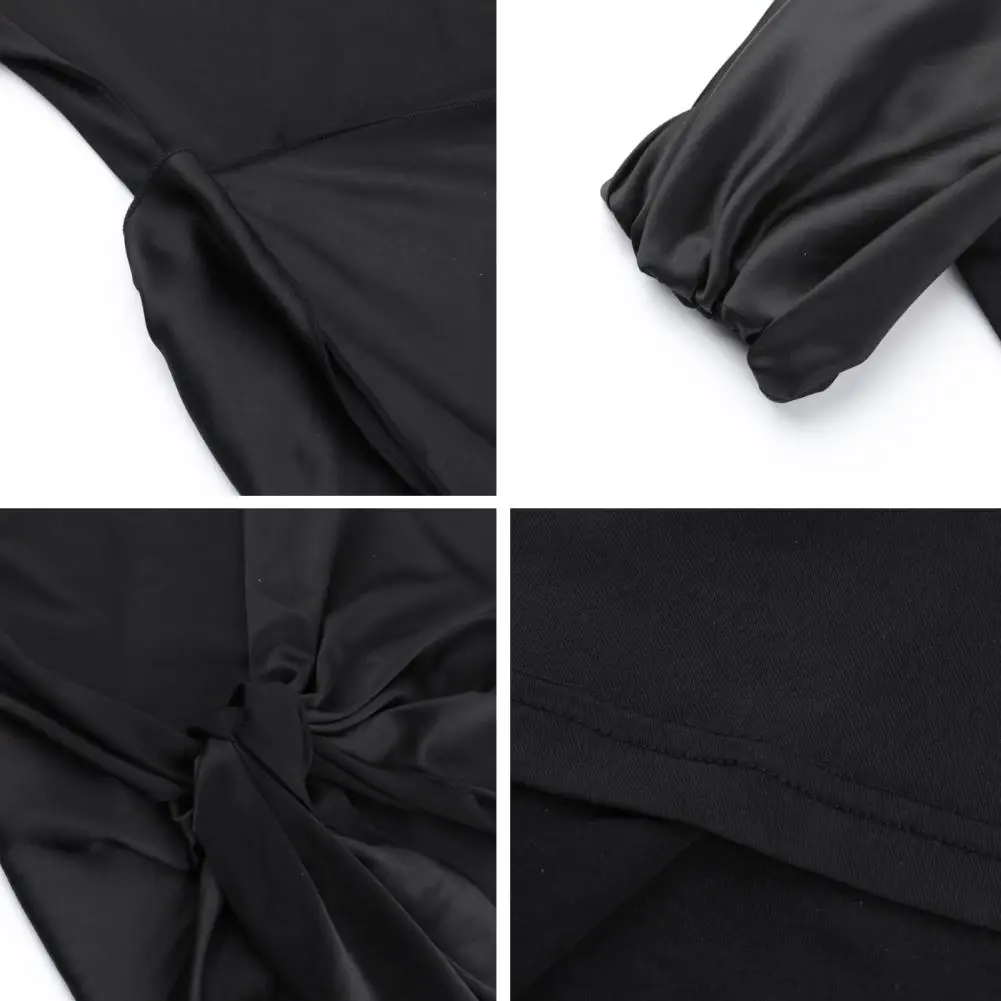 Enhance your wardrobe with this elegant solid color dress for women. The dress features a unique design with ties that can be used as a waist decoration, adding a touch of sophistication. Its off neckline and irregular design give it a modern twist, reminiscent of a sloped collar.