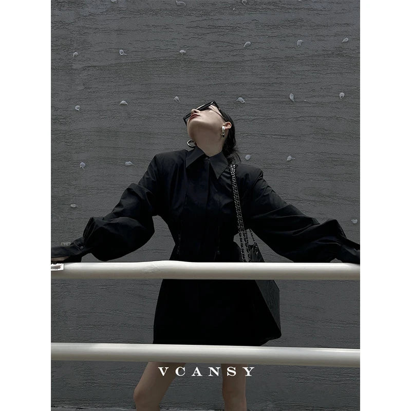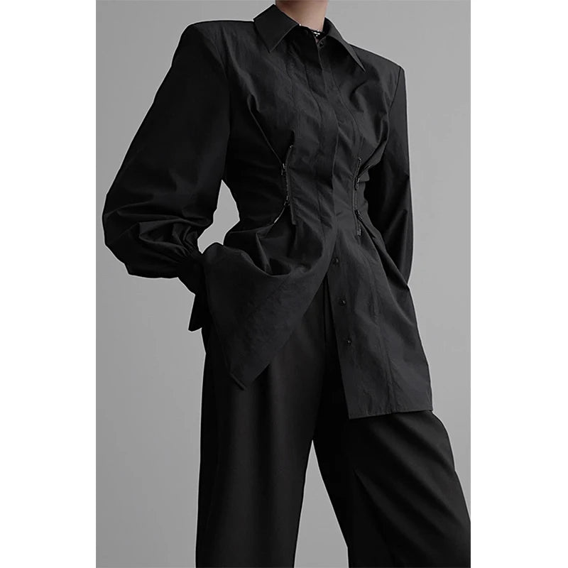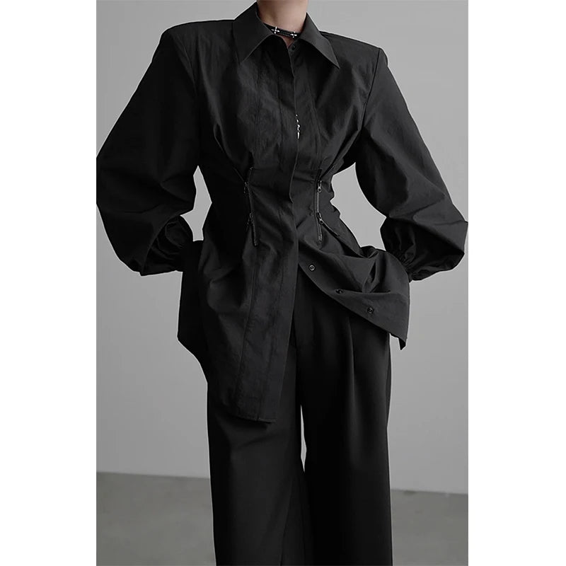 DERMEARNE MEXZT Y2K Black Shirts Women Gothic Harajuku Zipper Long Sleeve Blouses Office Ladies Fashion Korean Elegant Tunic Chic Tops New