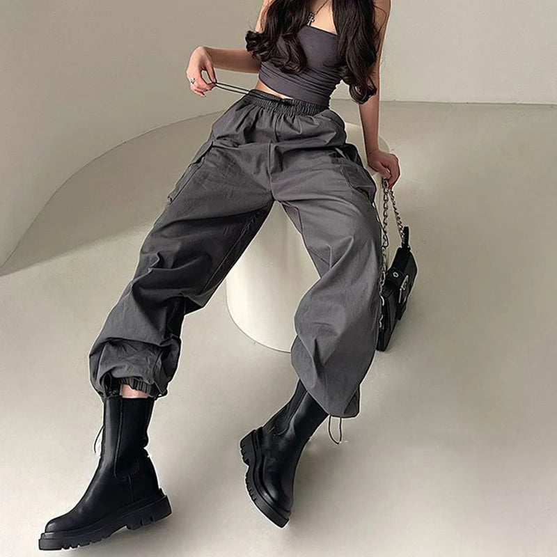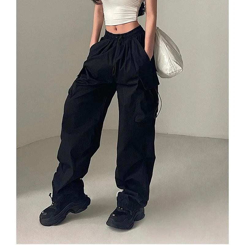 DERMEARNE MEXZT Y2K Cargo Pants Women Streetwear High Waist Baggy Drawstring Joggers Sweatpants Loose Casual Oversize Wide Leg Trousers