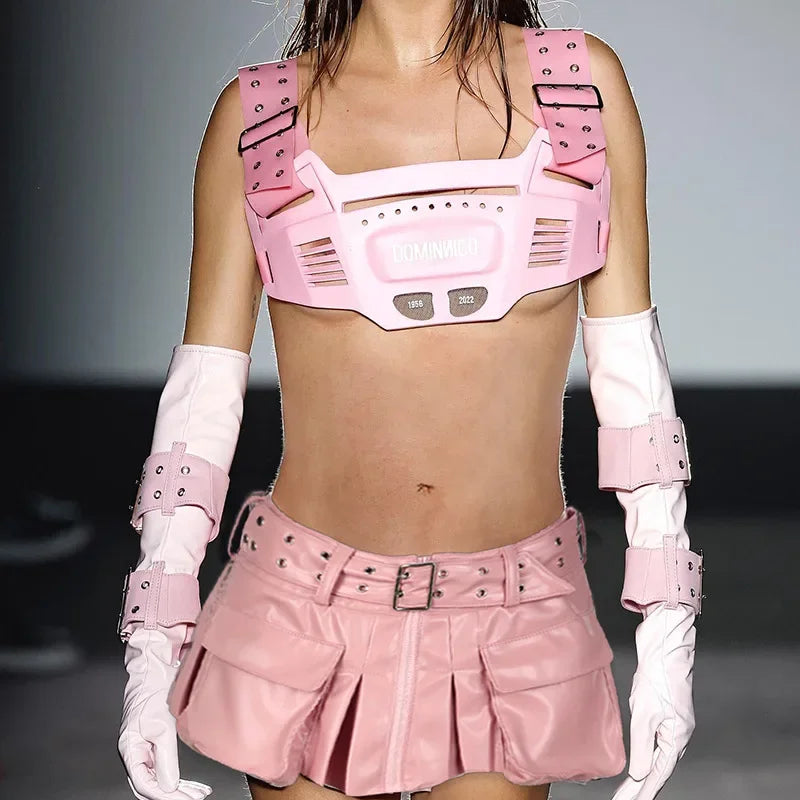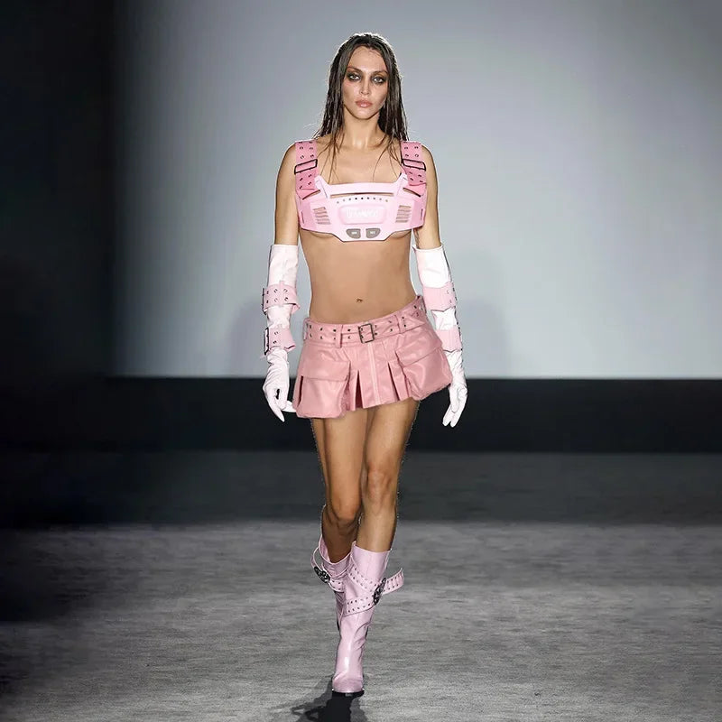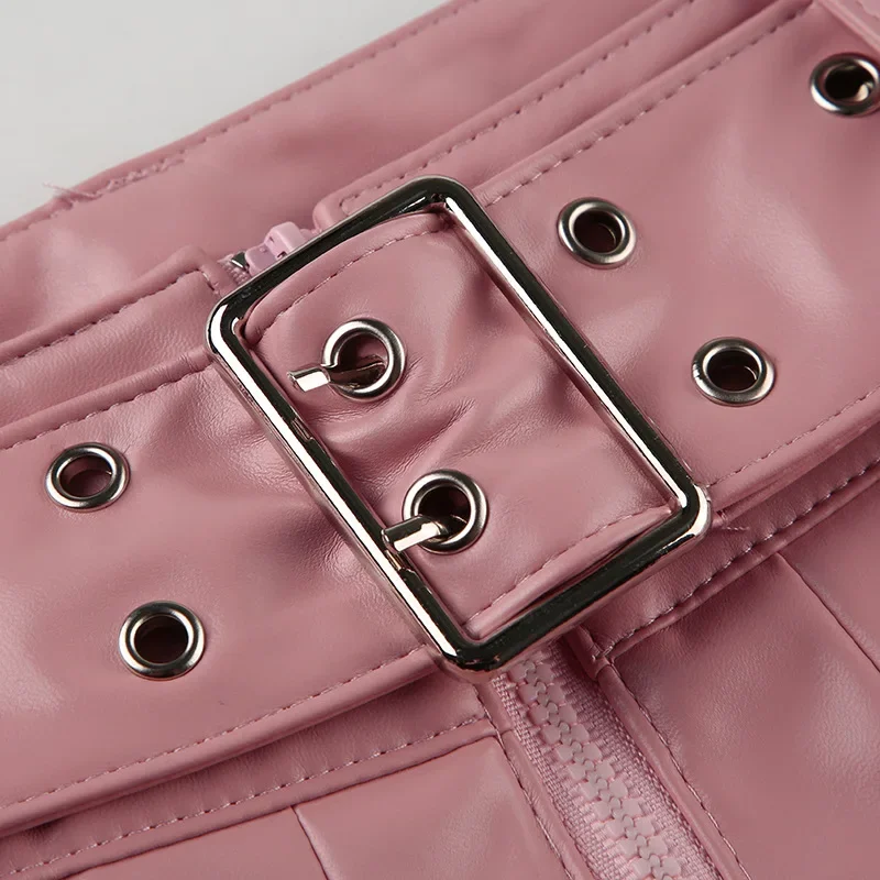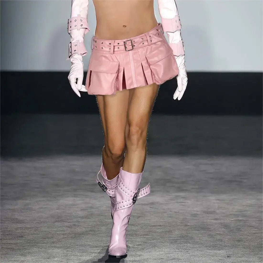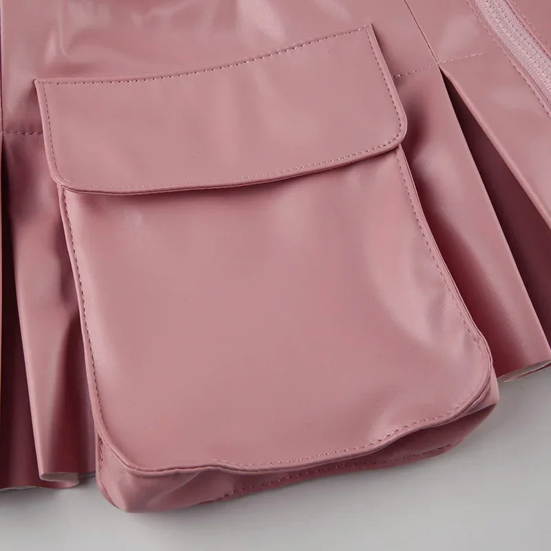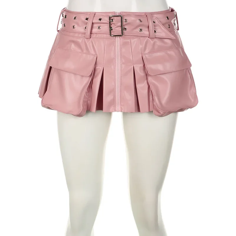 DERMEARNE Mini Pink Skirt Leather Dress Cargo Pencil Pocket Dress Y2K Streetwear Clothes 2025 Women Winter Sexy High Waist Elegant Skirts