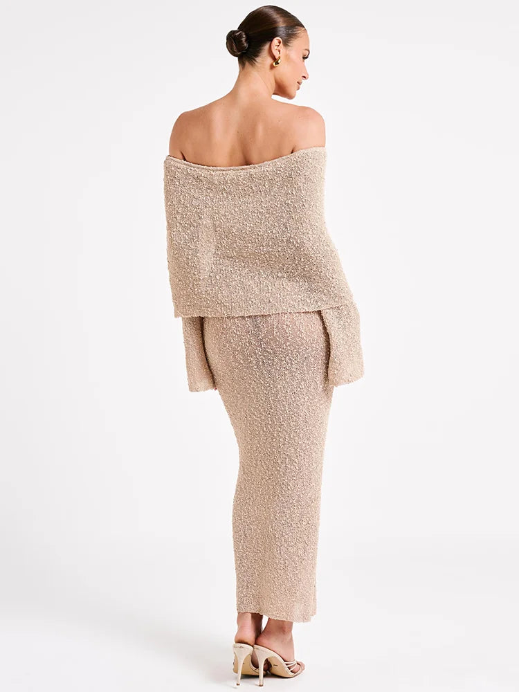 DERMEARNE Mozision Hollow Out Strapless Knit Sexy Maxi Dress For Women Off-shoulder Backless Long Sleeve Beach Holiday Long Dress