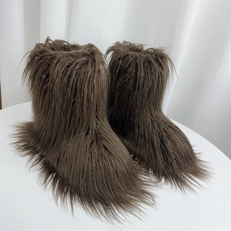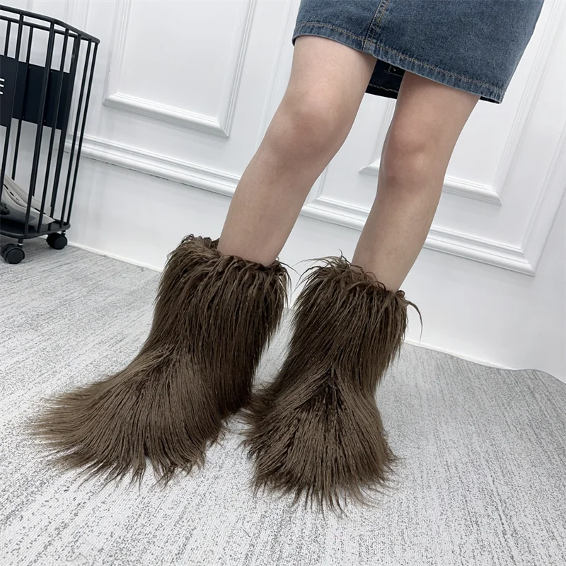 New Fashion Mongolia Fur Woman Snow Boots Rainbow Lady Winter Boots Warm Boots Women Boots Shoes Bottes de neige femmes
