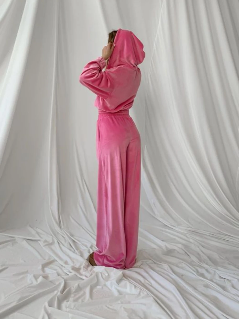 DERMEARNE New Women's Suit Hooded Long-Sleeved Short Coat And Wide-Leg Pant Outfits Fall Solid Color Ladies Two-Piece Set
