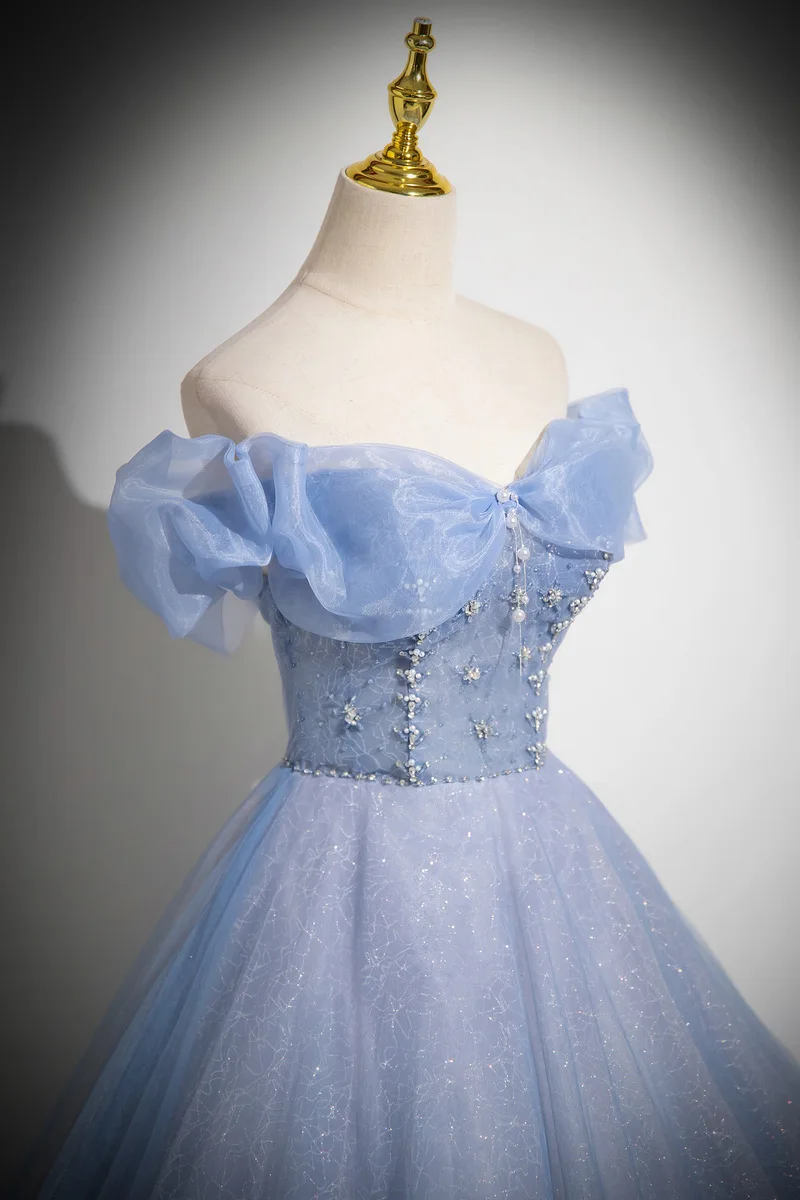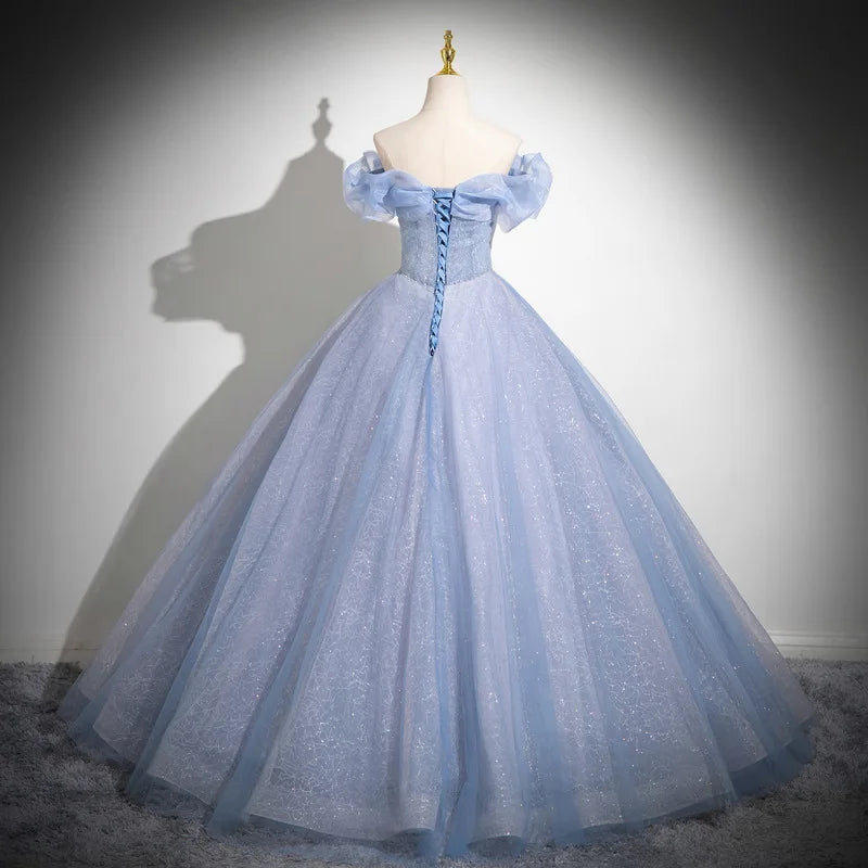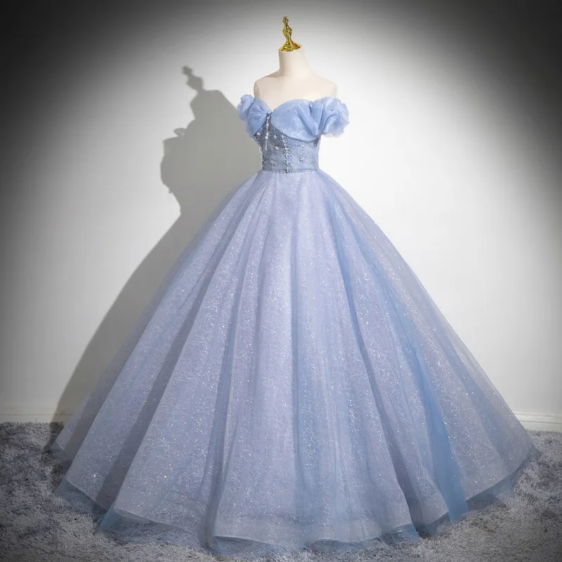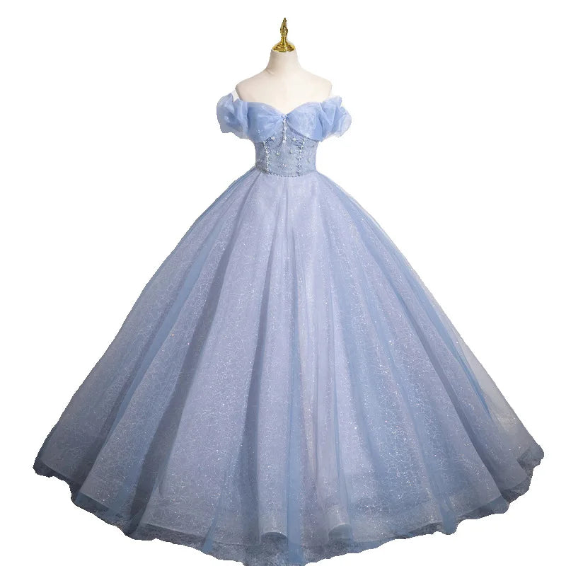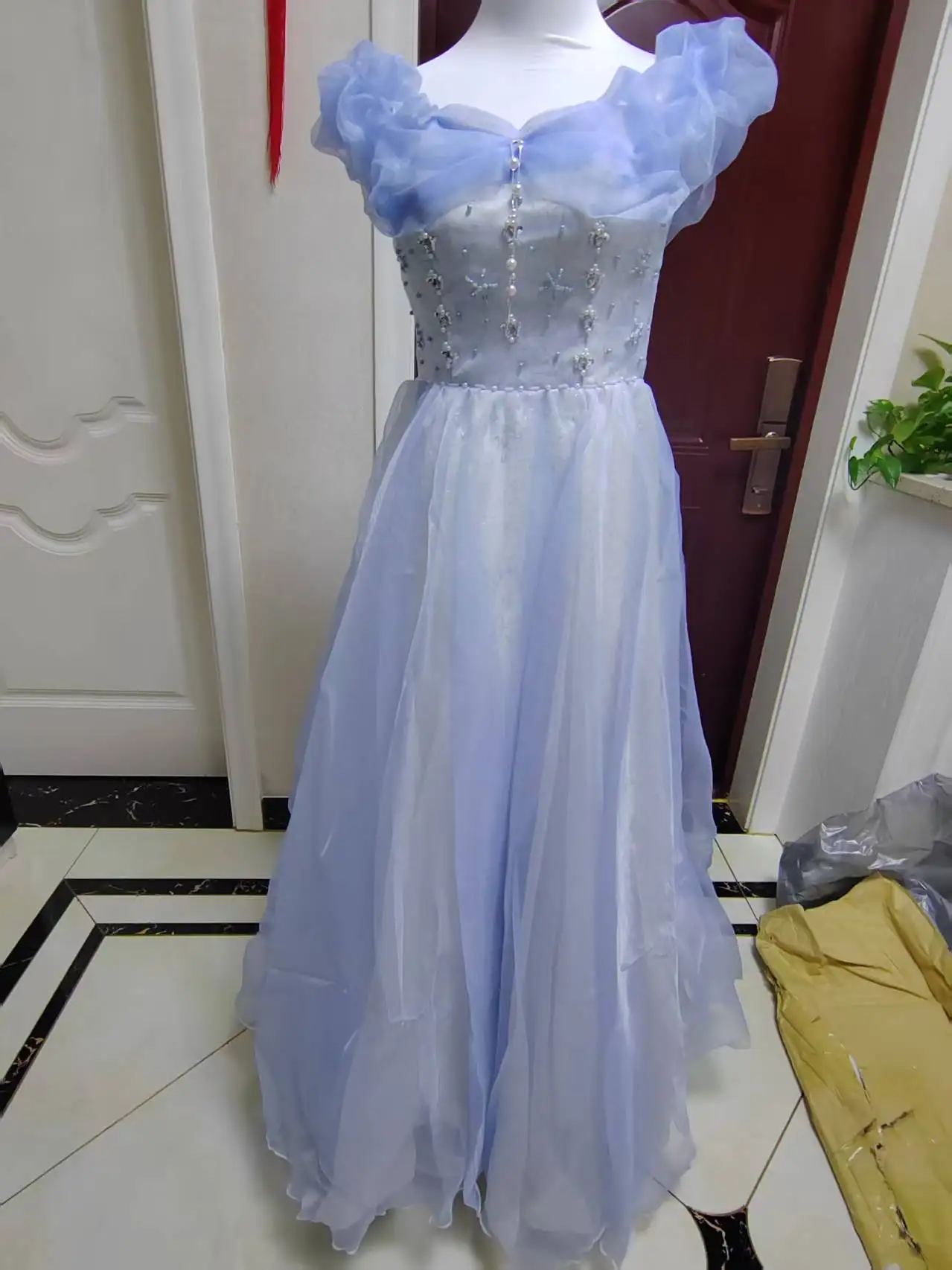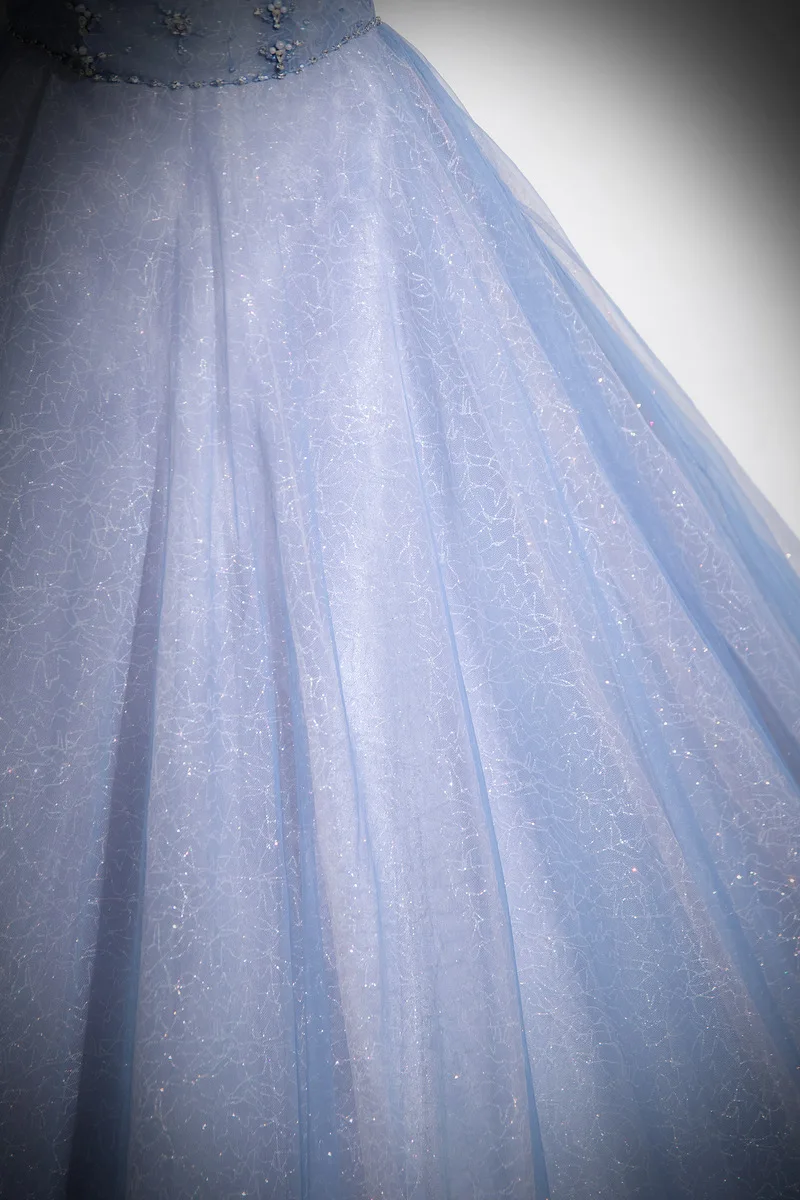 DERMEARNE One Shoulder Light Blue Performance Dress, Fluffy Dress, Princess Coming of Age Ceremony, Hosting Annual Party Dress