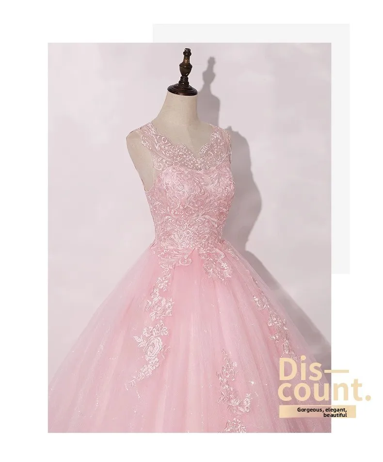 DERMEARNE Pink Colored Gauze 2026 New Super Fairy Fluffy Skirt Hosting Long Performance Costume Vocal Art Exam Student Solo Dress