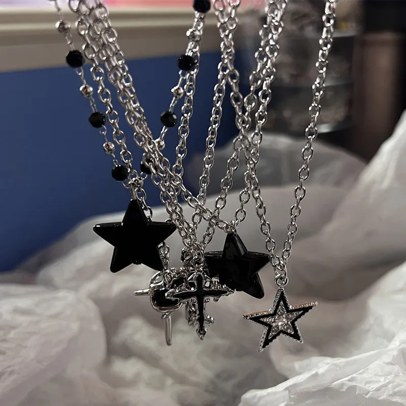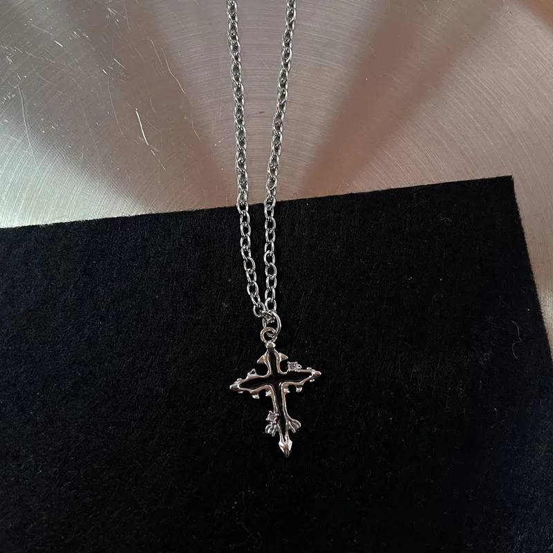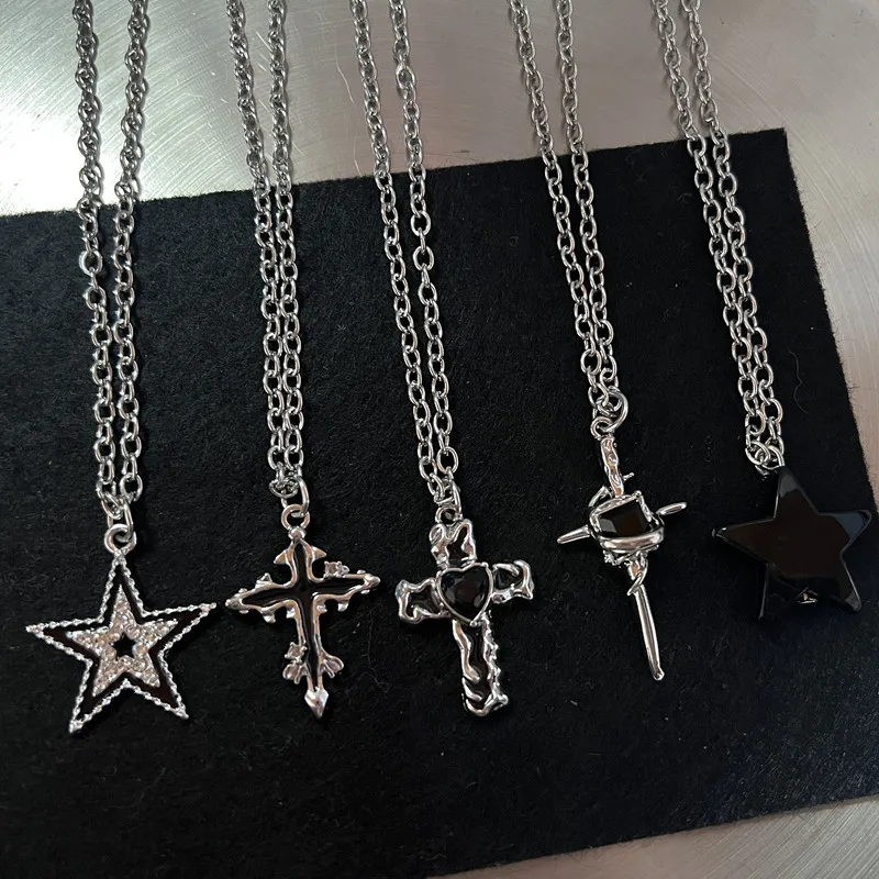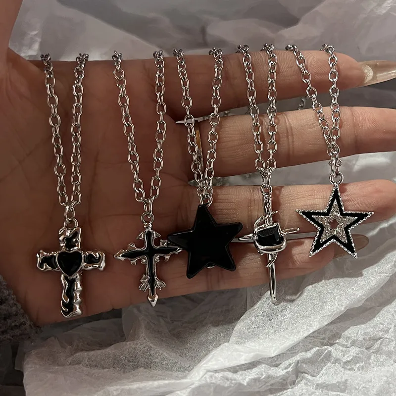 DERMEARNE Punk Rock Black Heart Cross Pendant Chain Necklace For Men Women Cool Hip Hop Street Vintage 90s Y2K Grunge Goth Accessories
