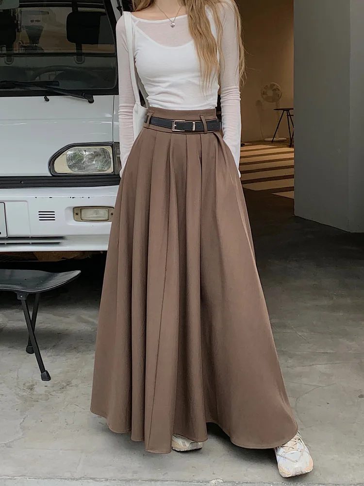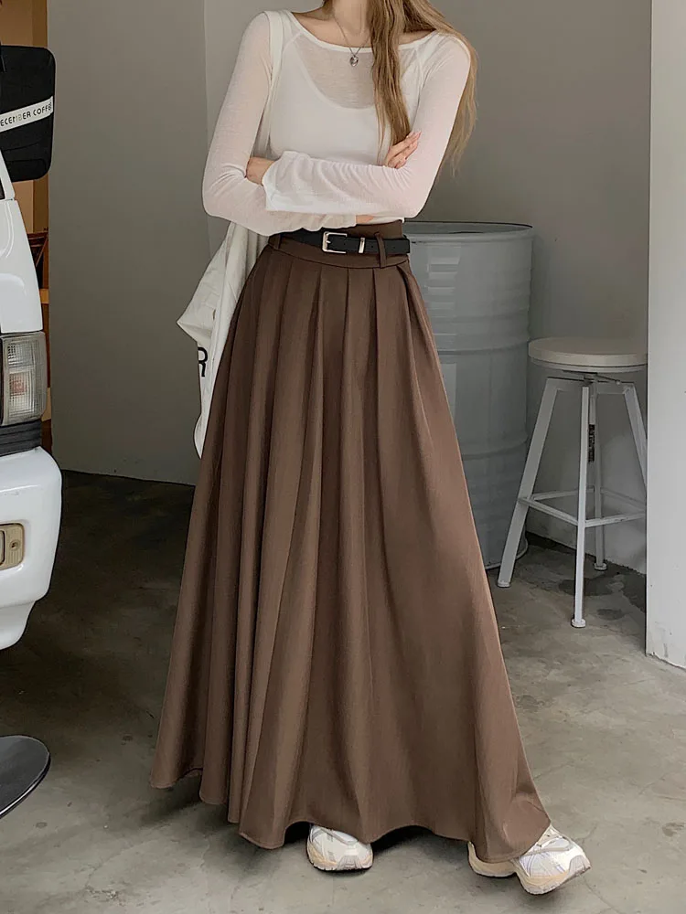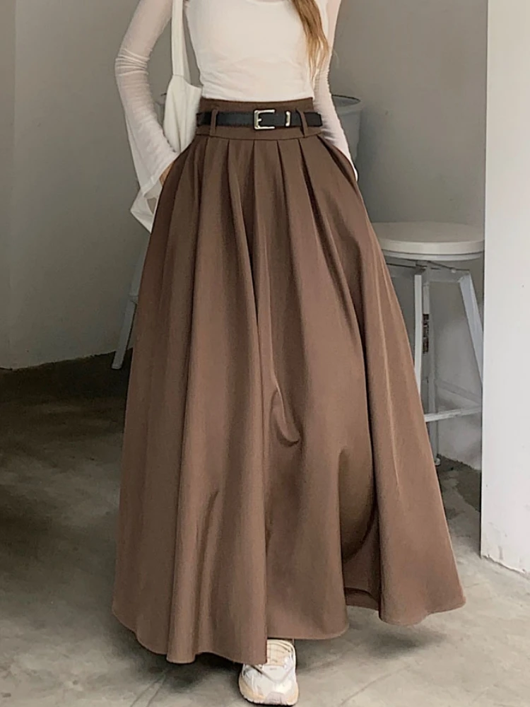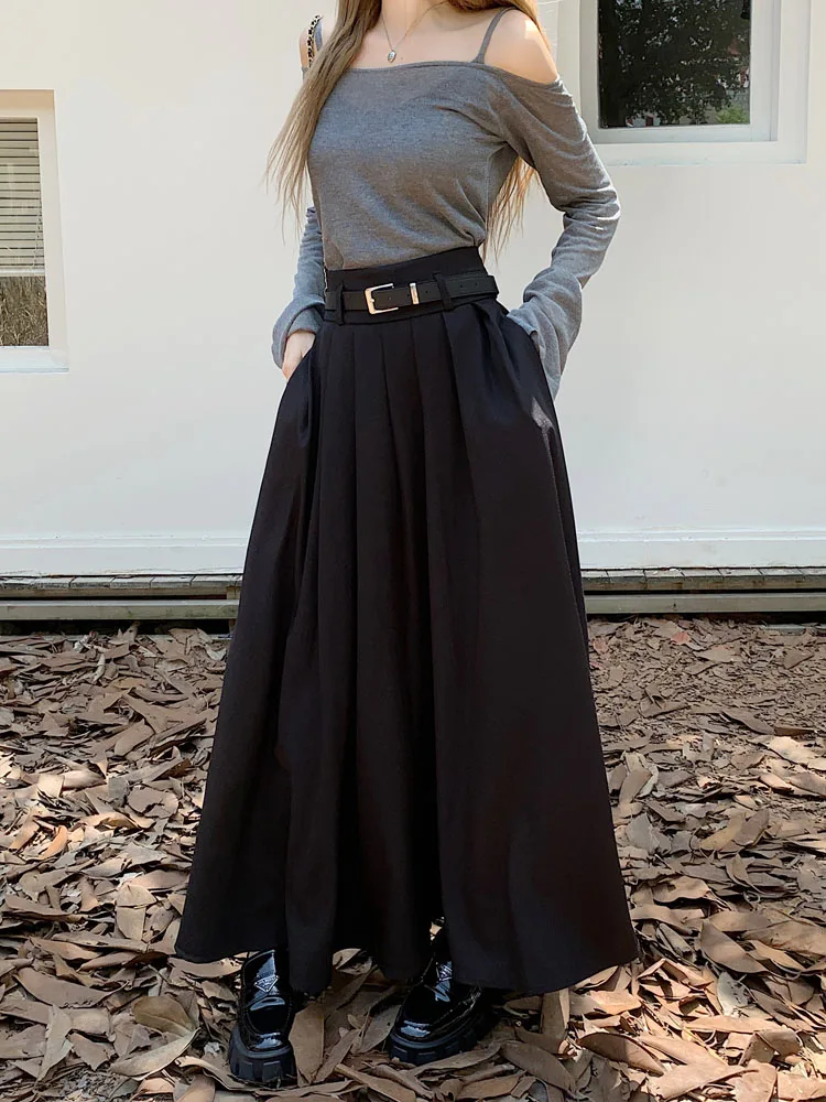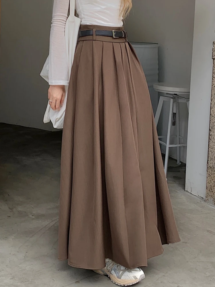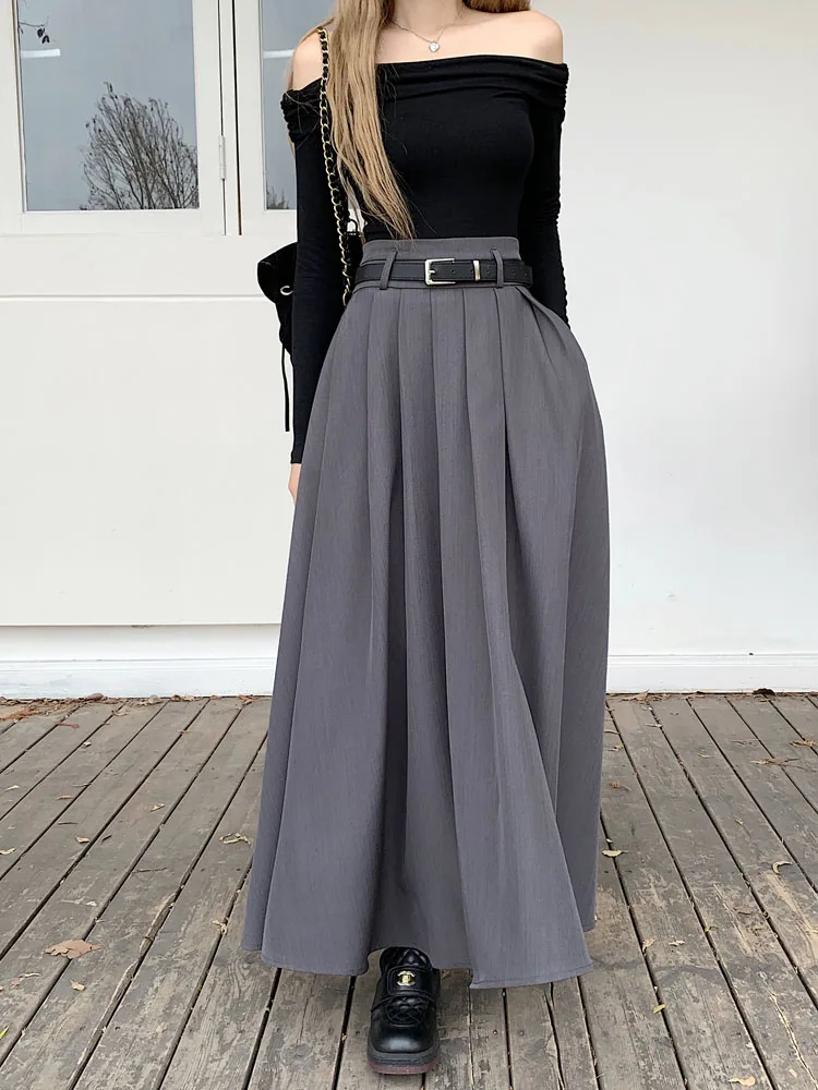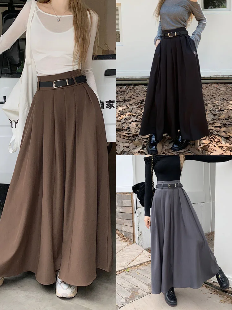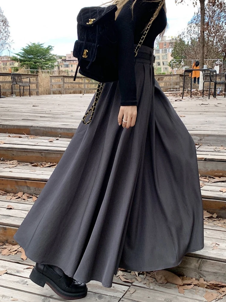DERMEARNE Qiukichonson Grey Midi Long Skirts Womens Maxi Skirt 2025 Autumn Winter Suit Skirt Goth Lolita High Waist Ruffle Pleated Skirts