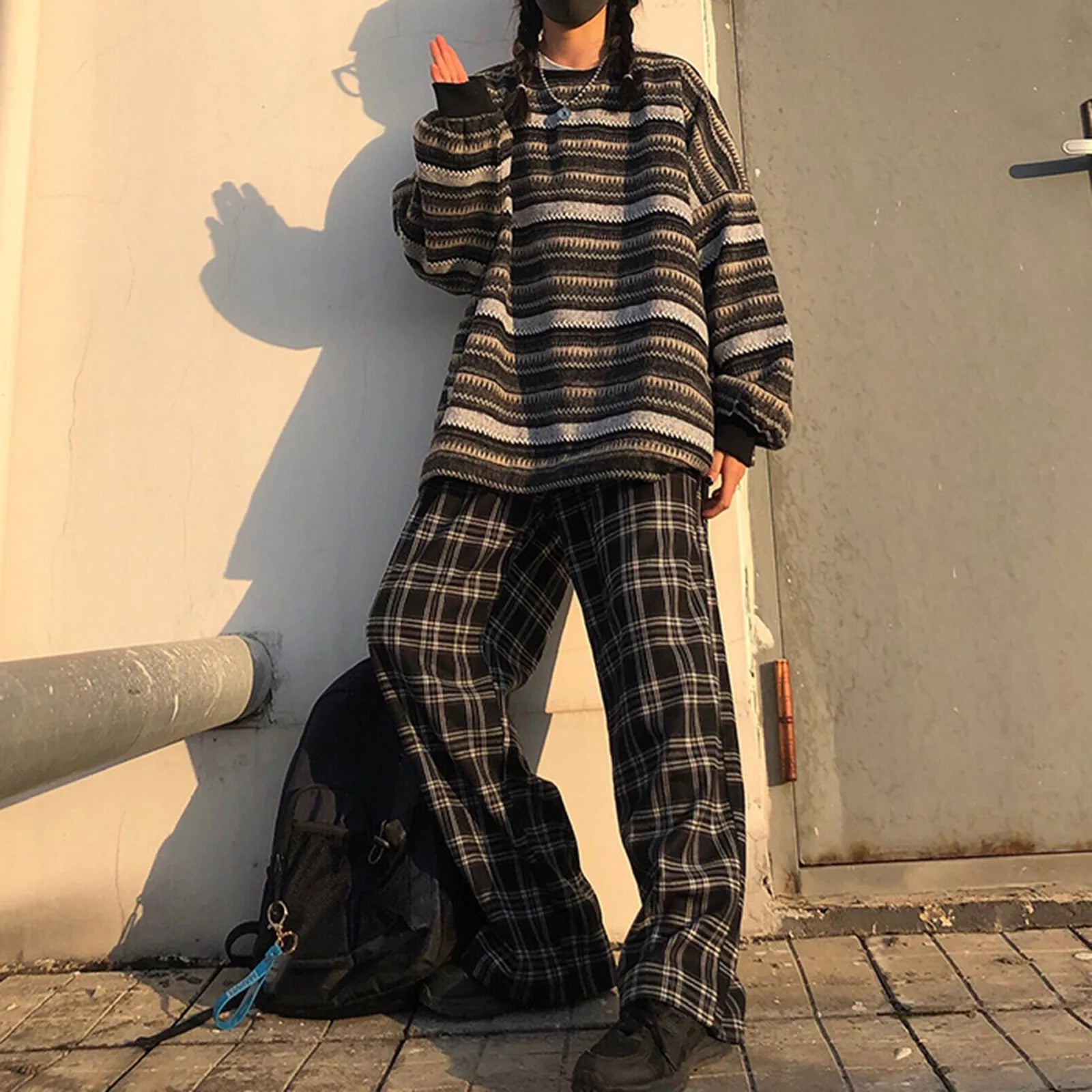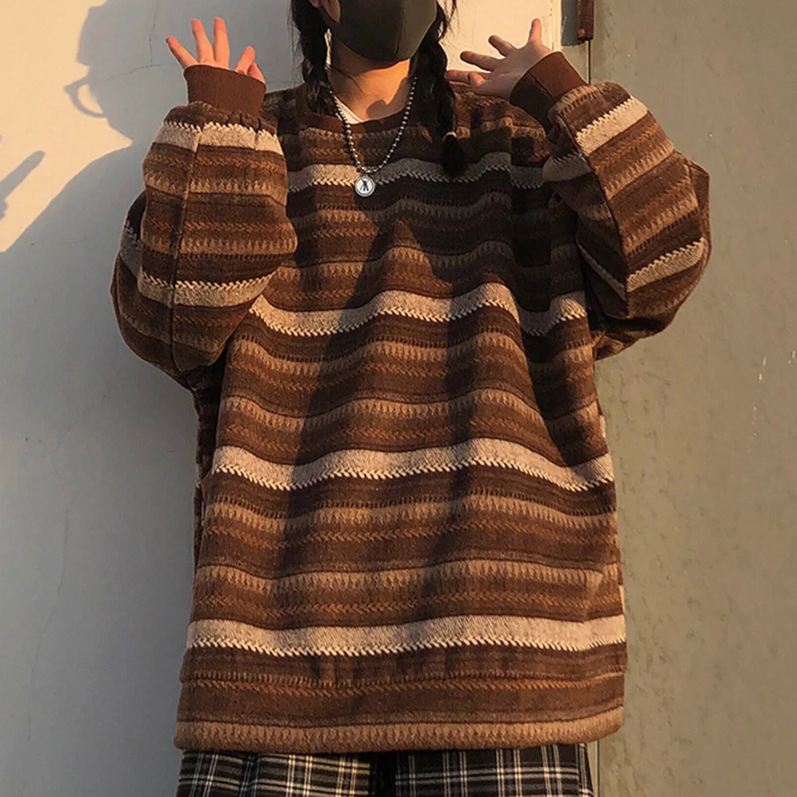 Striped Sweatshirt Pullover Oversized Sweater Oversized Knitted Long Sleeved Sweater