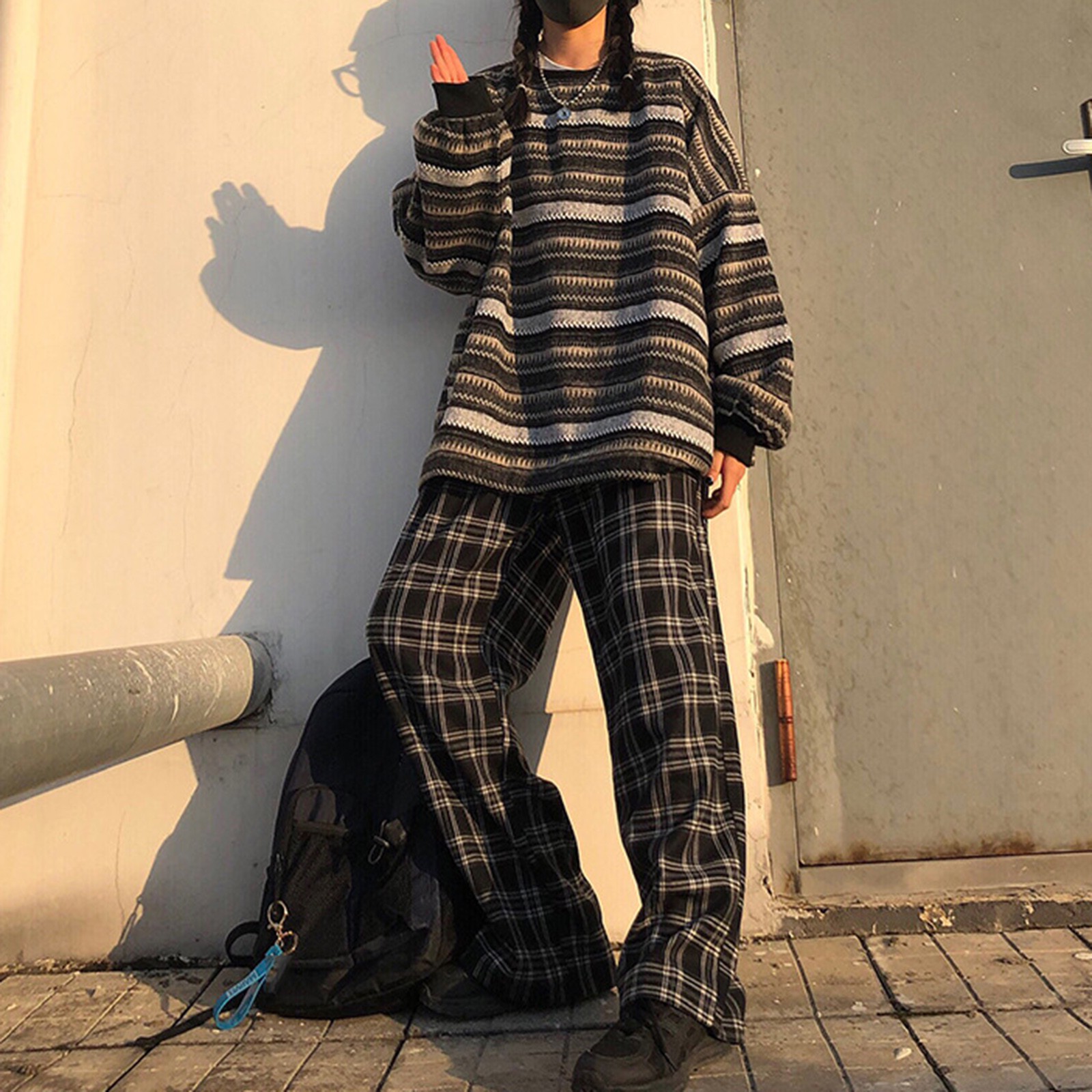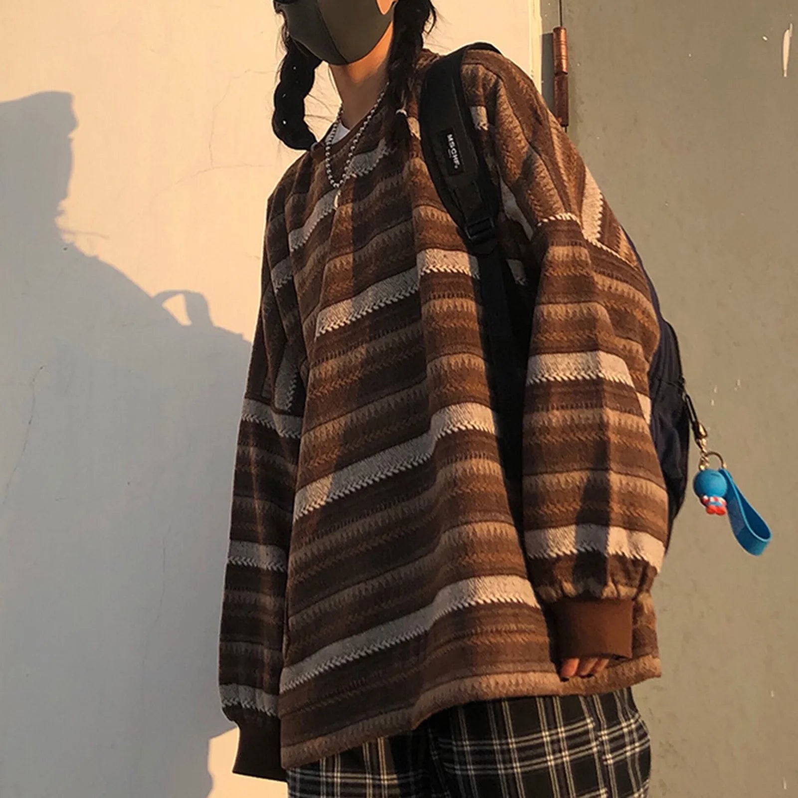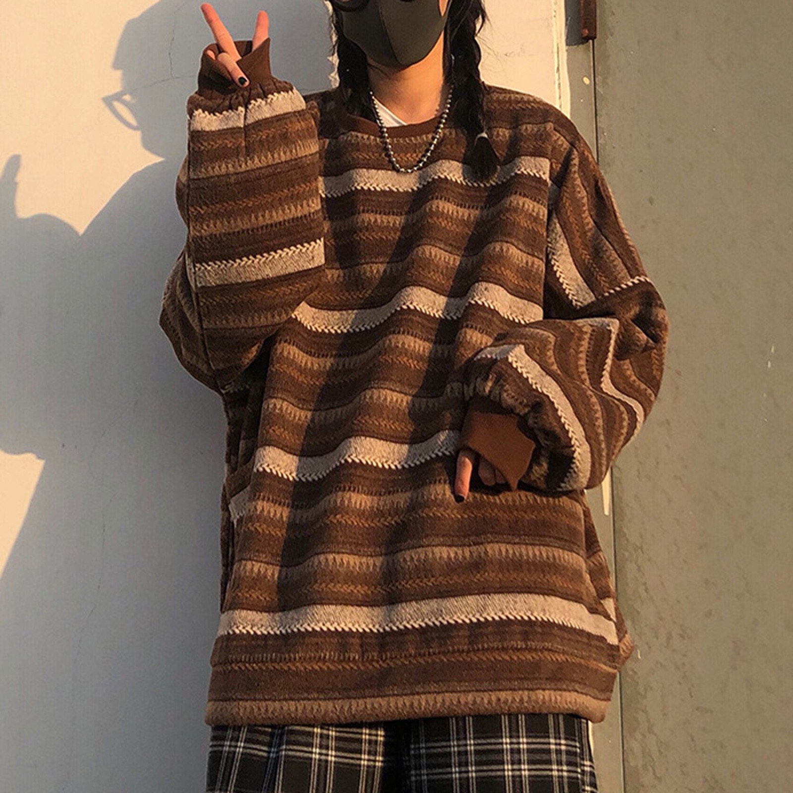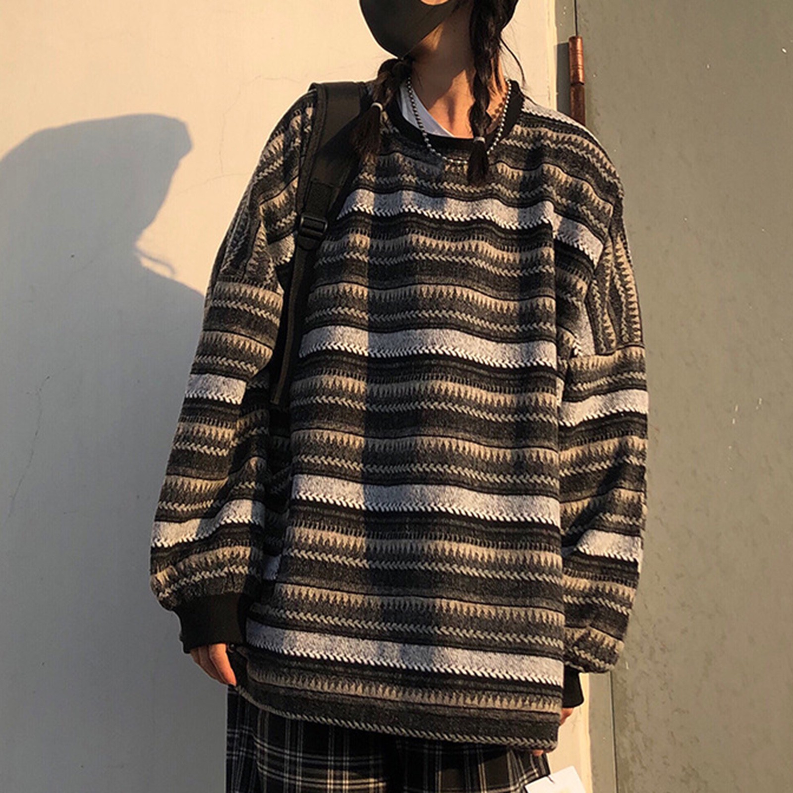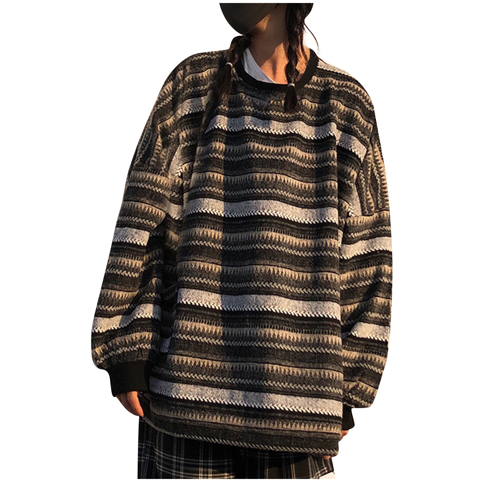 Striped Sweatshirt Pullover Oversized Sweater Oversized Knitted Long Sleeved Sweater