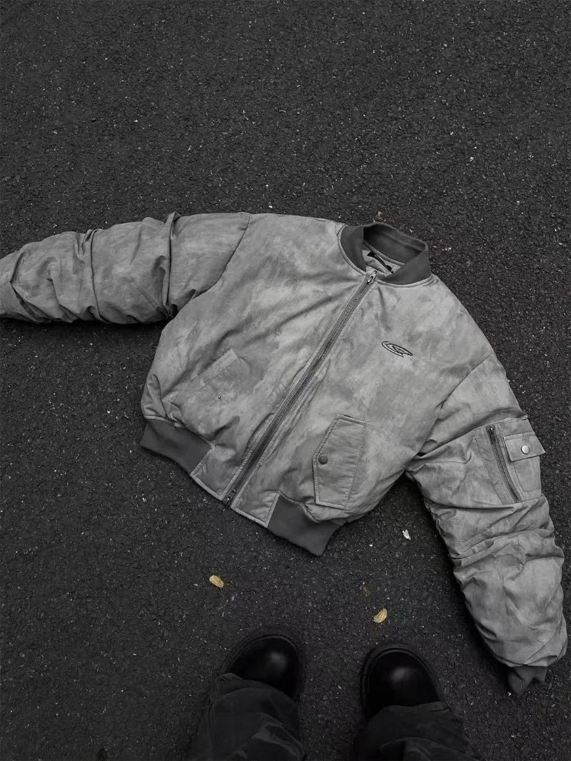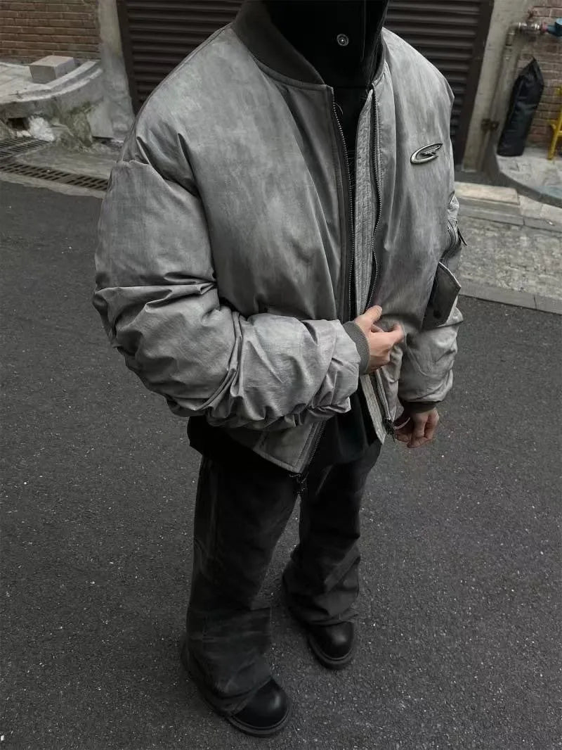 DERMEARNE Retro Wasteland Wind Jackets Pleated Design Flight Jacket Baseball Suit Cotton Suit American Parkas Hip Hop Winter Coat New Man
