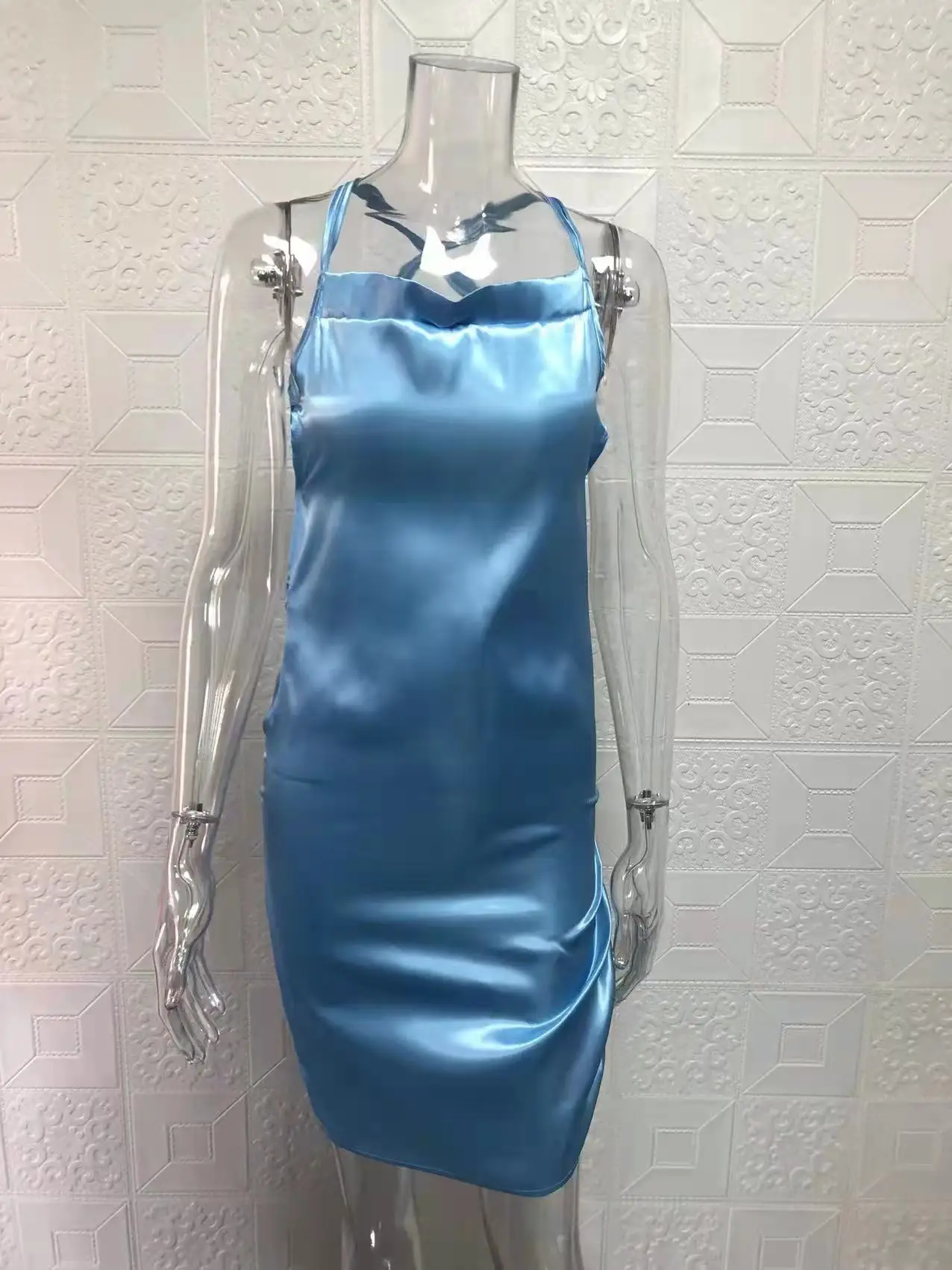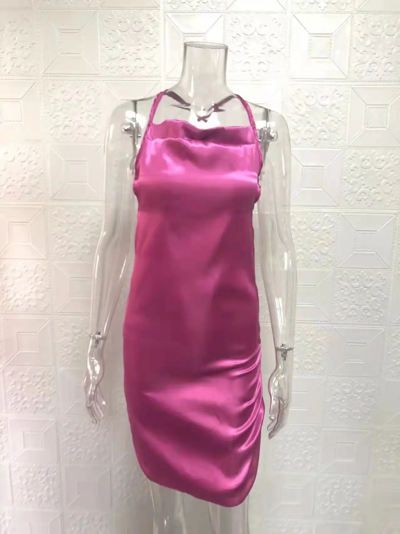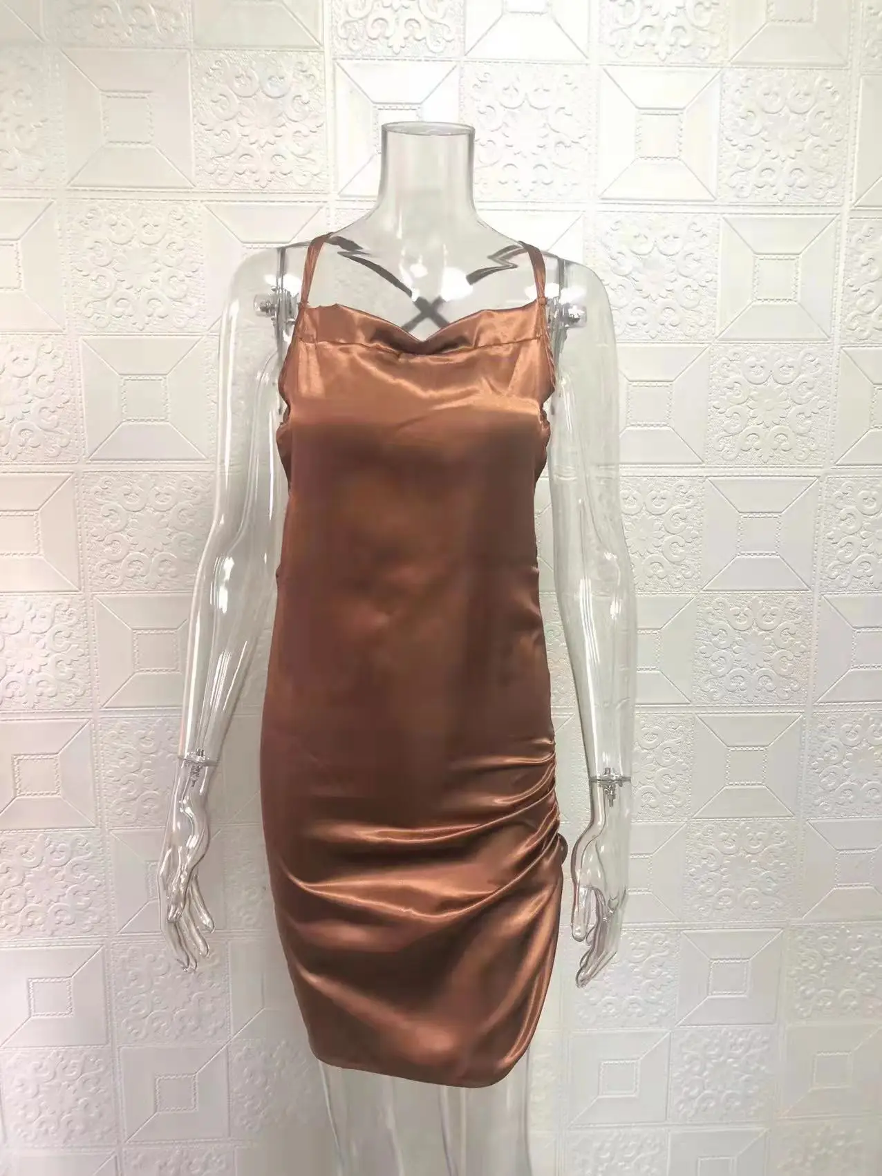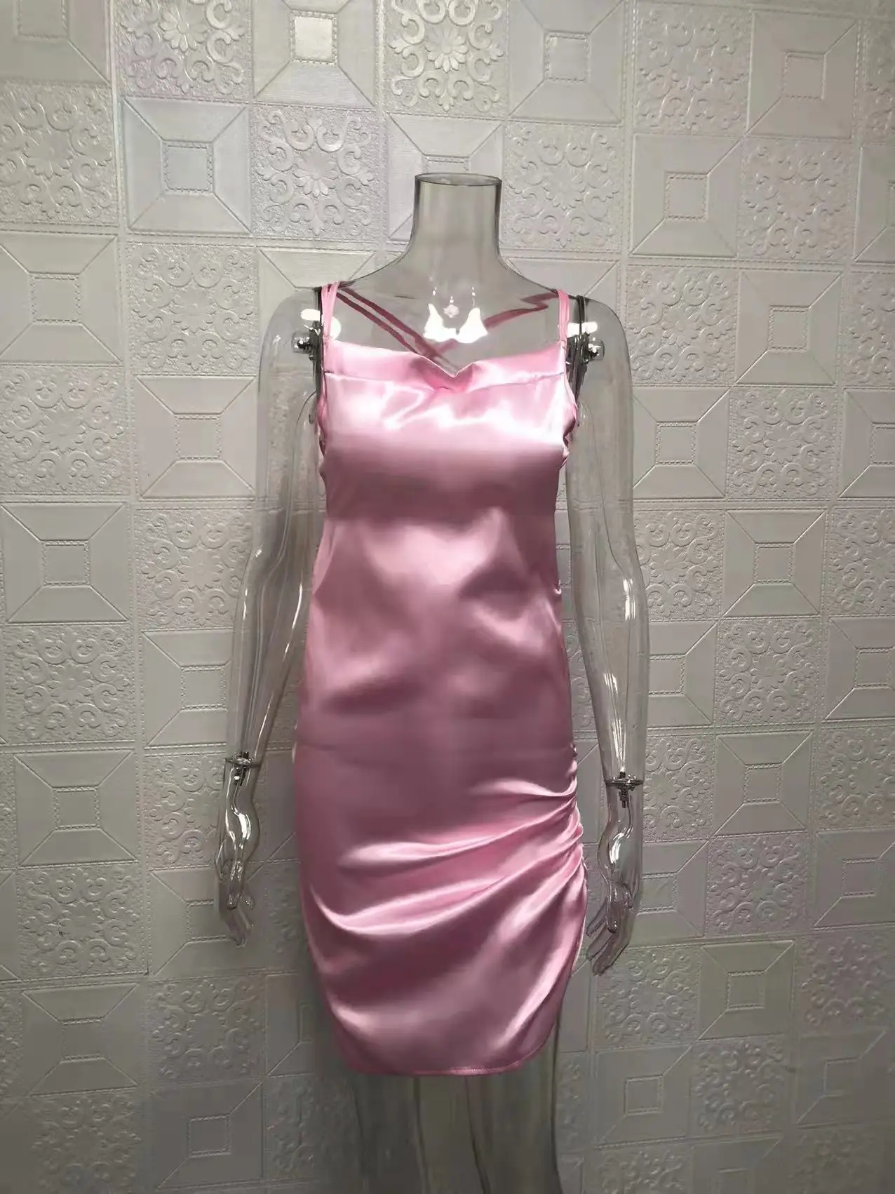 DERMEARNE Sexy Spaghetti Straps V-neck Tight Mini Dress Ladies Backless Wrinkled Sheath Wrapping Dress Latest Club Party