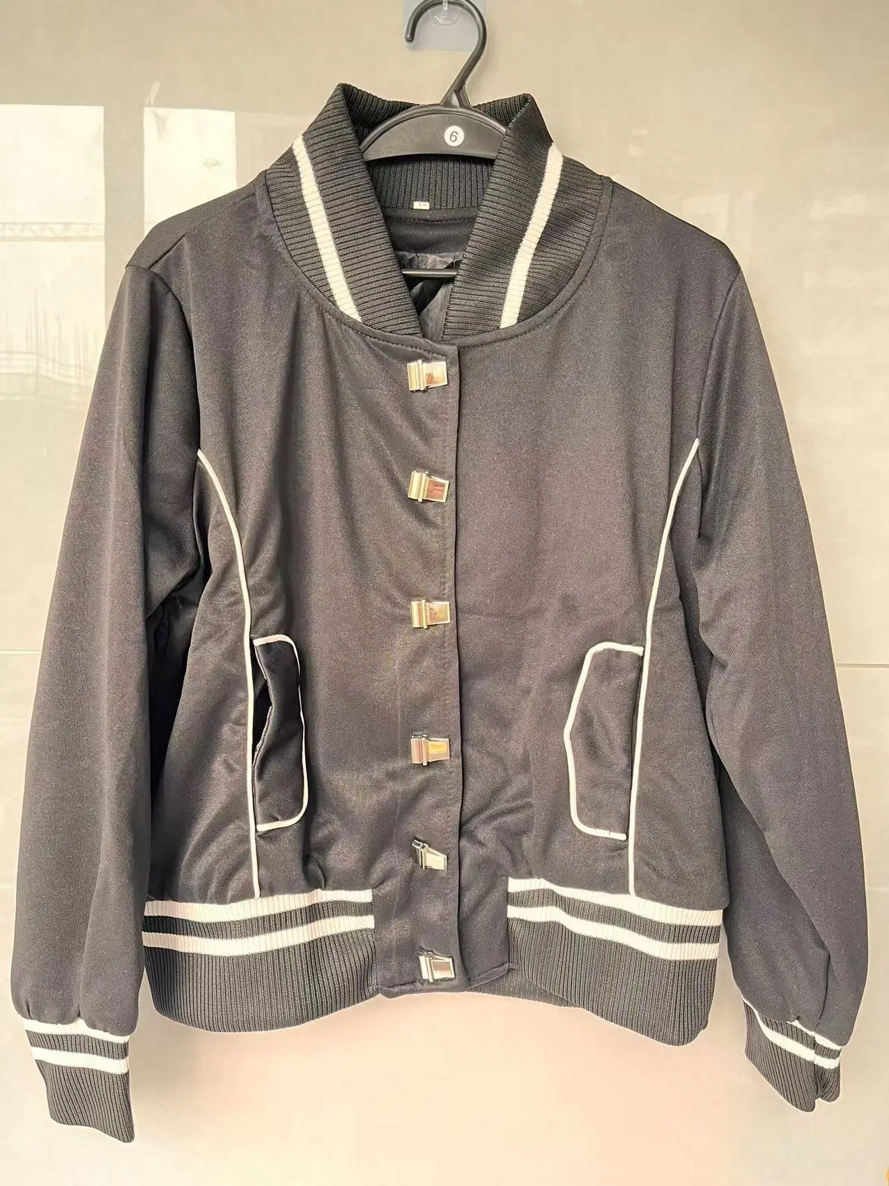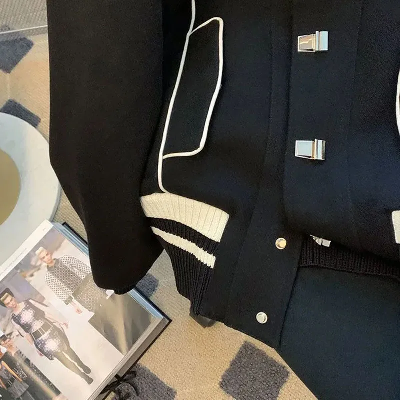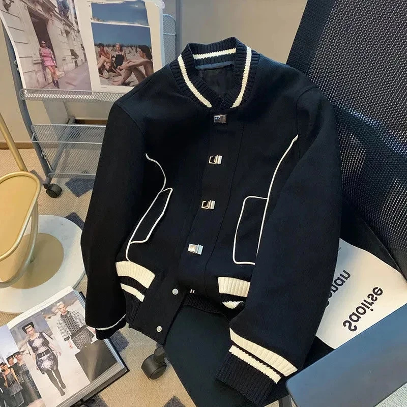 DERMEARNE Splices Panelled Baseball Jackets Female Vintage Style Loose Outwears Women's Jacket Coat Long Sleeve Stand Collar Coat Autumn