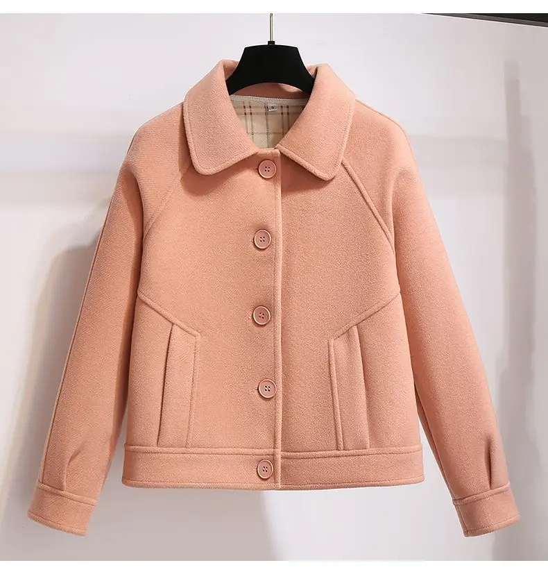 DERMEARNE Spring Autumn Short Woolen Coat Female 2025 Autumn Attire New Woolen Jacket Single Breasted Lapel collar Overcoat